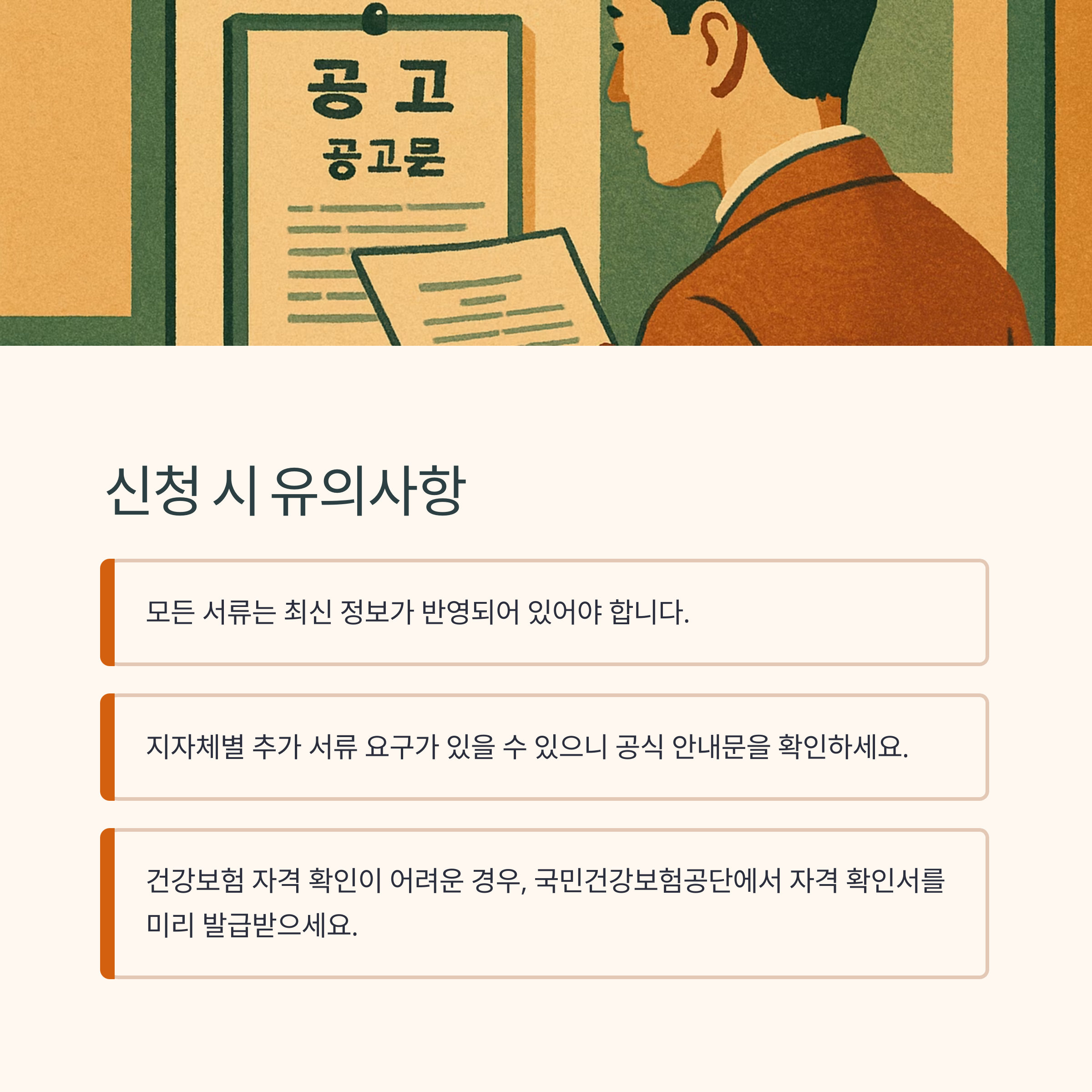 - 각 지자체, 신청 방식(온라인/오프라인)에 따라 추가 서류 요구 및 안내가 있을 수 있으므로 신청 전 반드시 해당 기관의 공식 안내문을 확인하시기 바랍니다.
