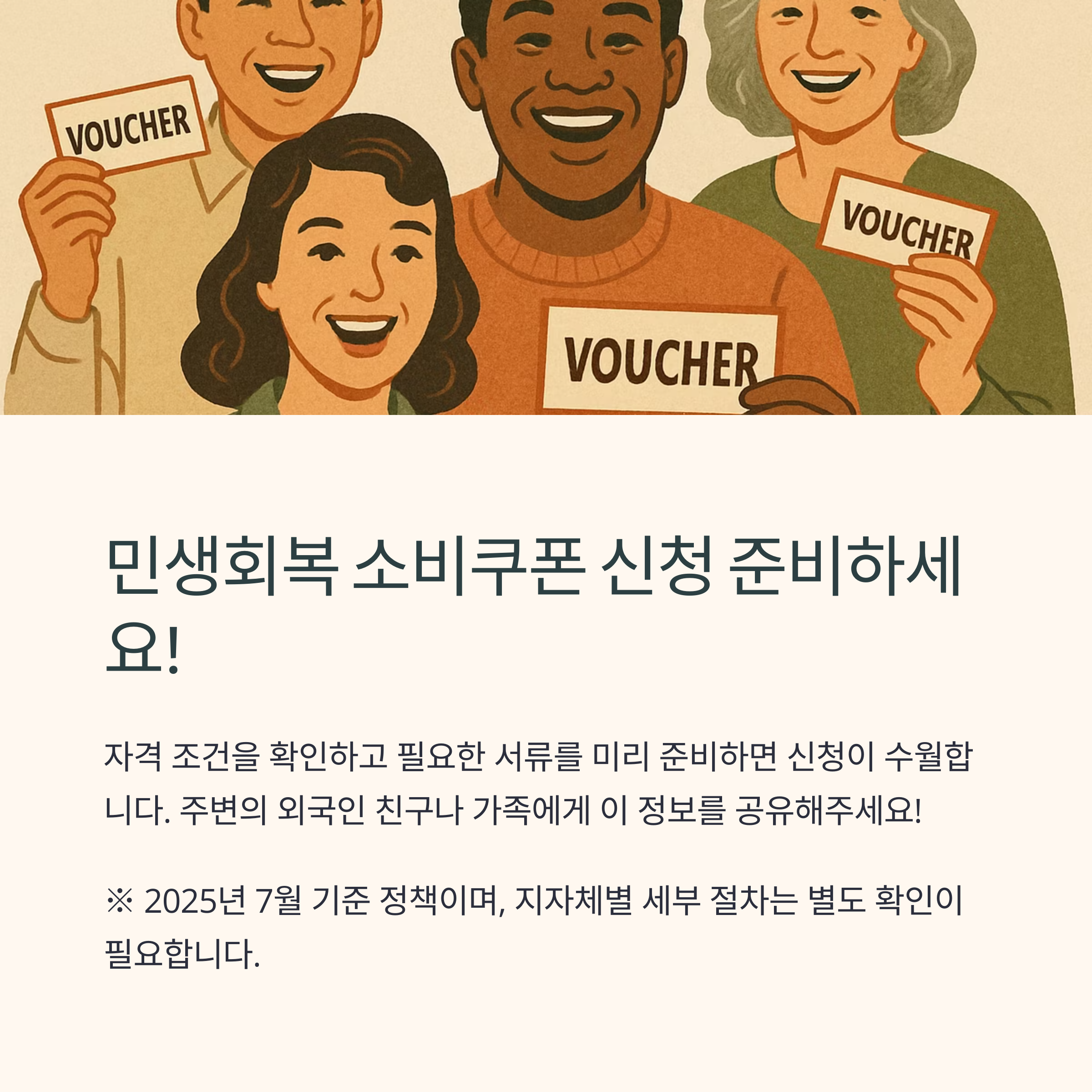 - 단기체류자, 단순 외국인 근로자, 관광비자·체류자 등은 지급 대상이 아닙니다.