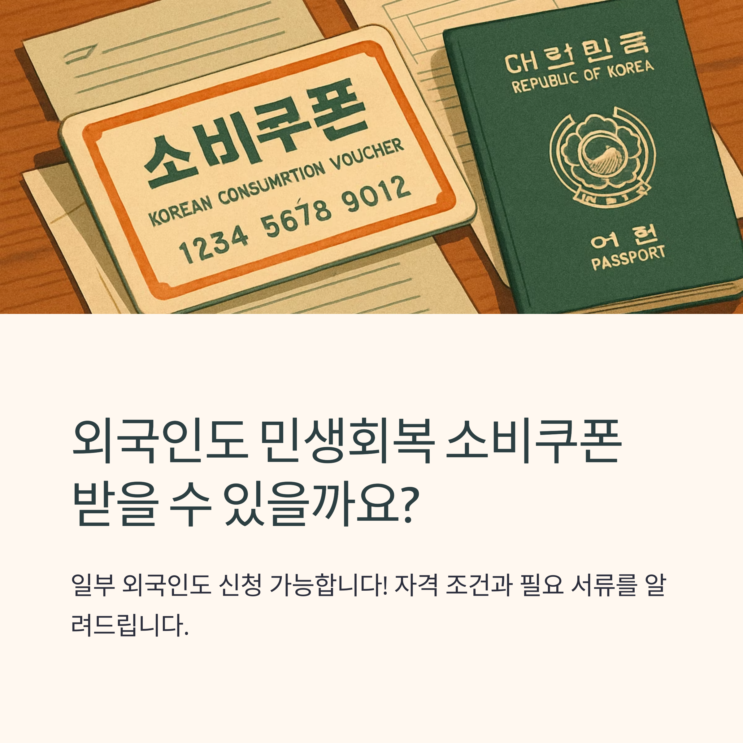 외국인이 민생회복 소비쿠폰을 신청할 때는 자격에 따라 필요한 신분 및 자격 증빙 서류를 준비해야 합니다.