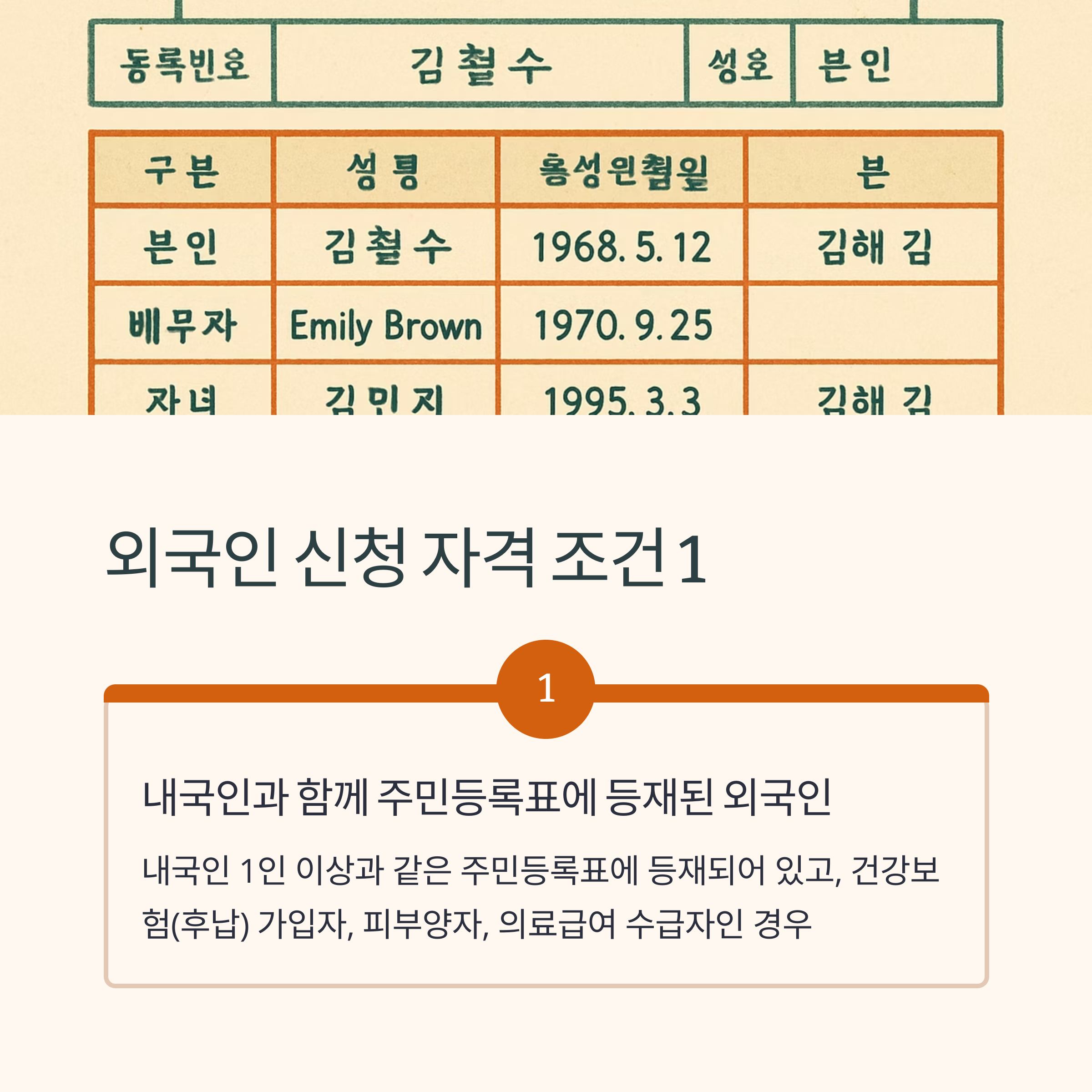 1. 내국인과 함께 주민등록표에 등재된 외국인
