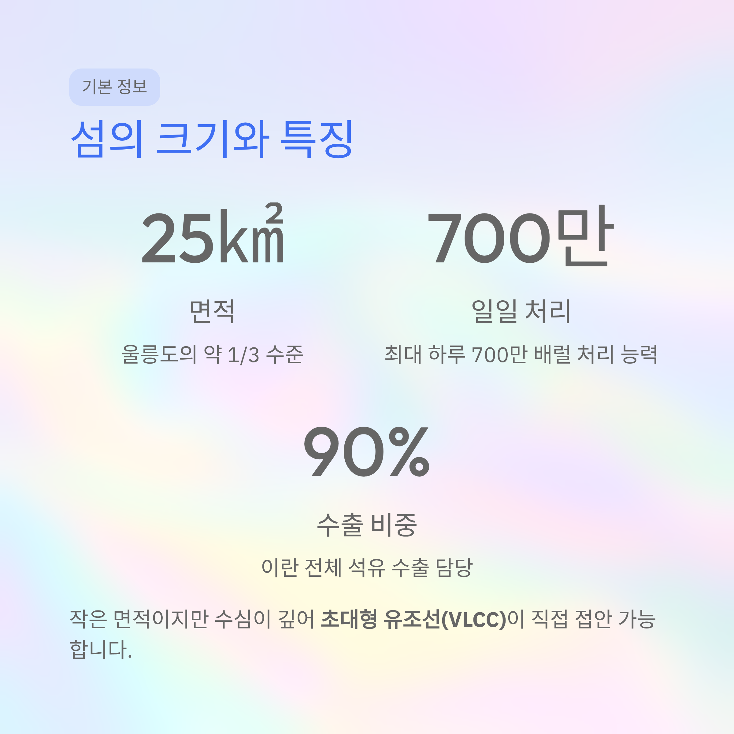 깊은 수심 덕분에 "30만 톤급 초대형 유조선(VLCC)"이 직접 접안할 수 있습니다.