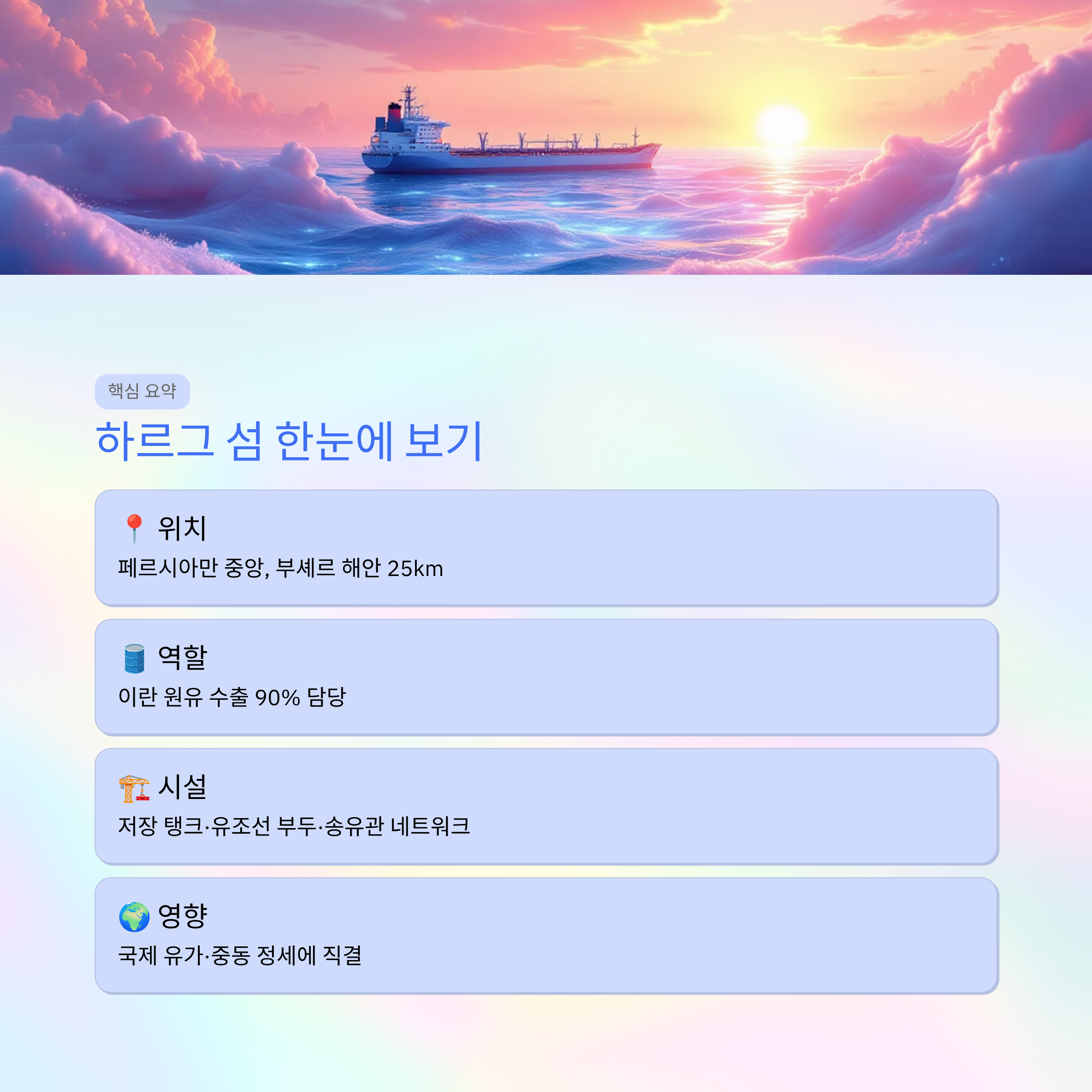 이번 글에서는 하르그 섬 위치, 특징, 석유 터미널 구조, 전략적 중요성까지 자세히 정리해 보겠습니다.
