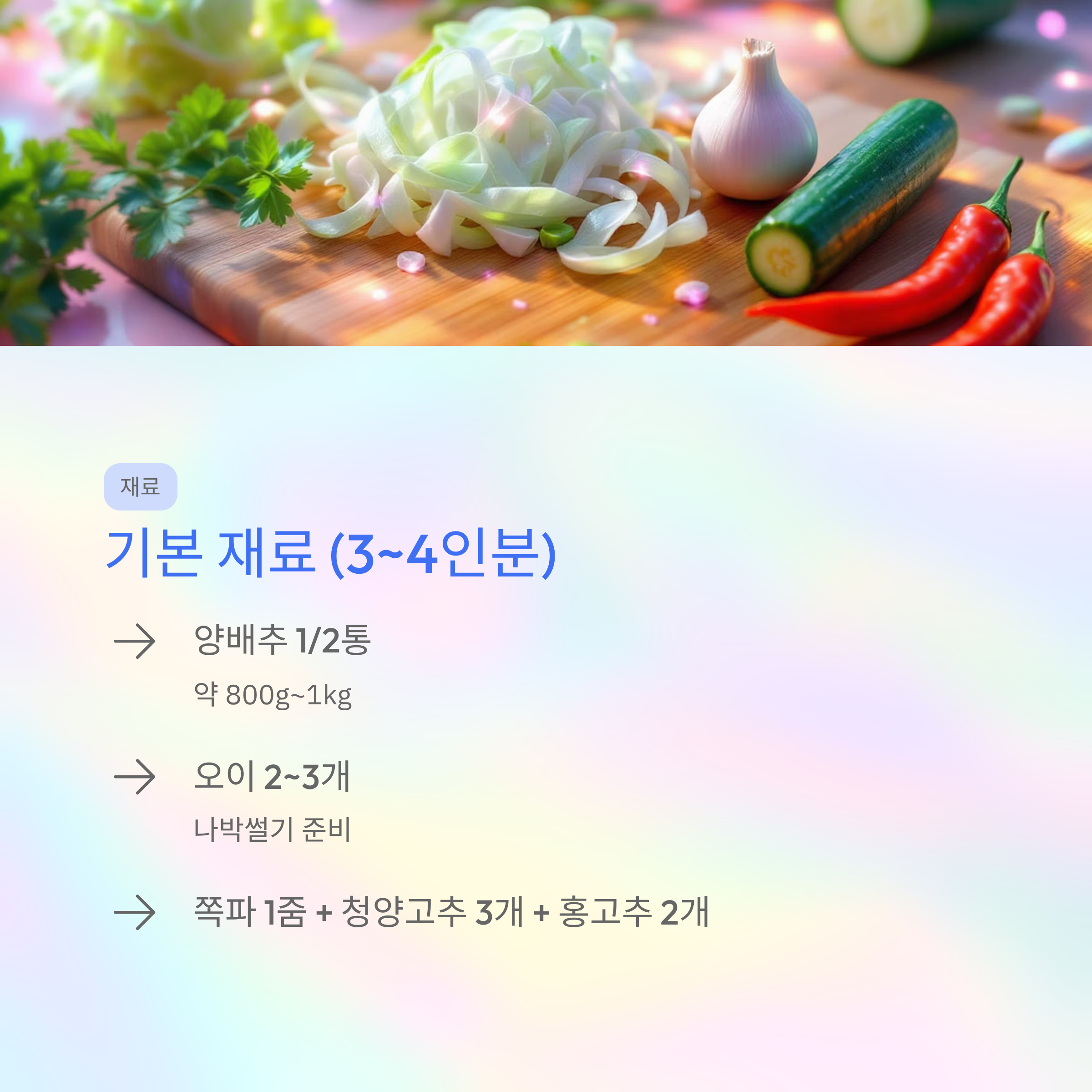 양배추물김치 재료 (3~4인분 기준)