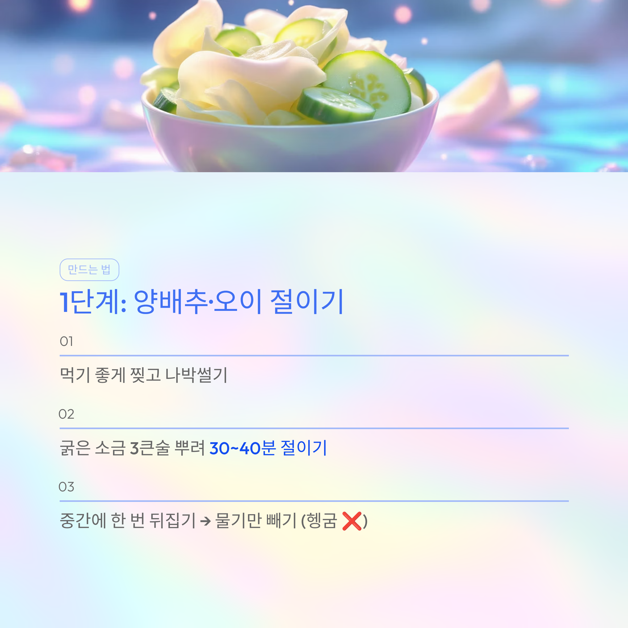 - 양배추와 오이를 30분 절이기