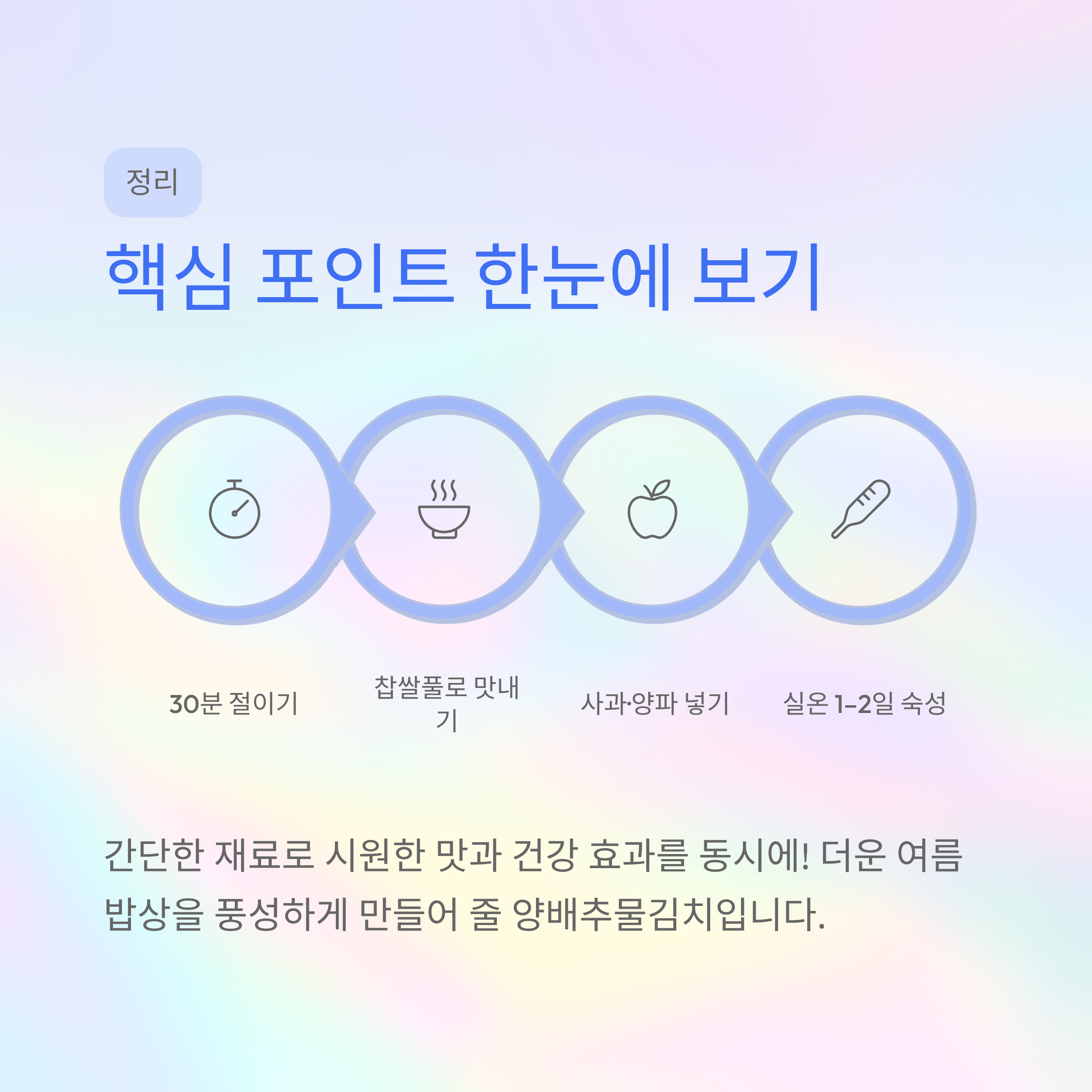 양배추물김치는 간단한 재료로 만들 수 있으면서도 시원한 맛과 건강 효과를 동시에 얻을 수 있는 반찬입니다.