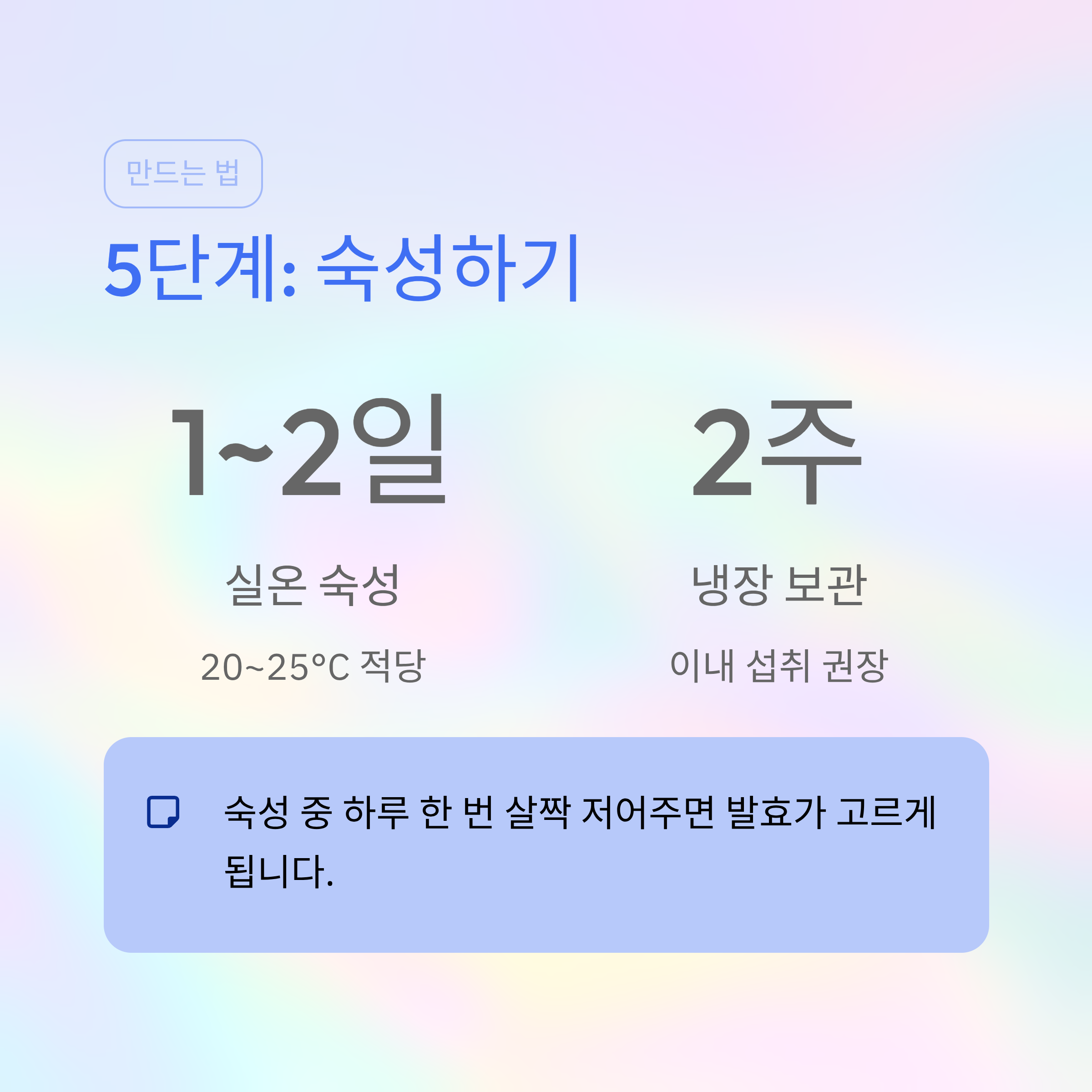 숙성 중 하루에 한 번 정도 살짝 저어주면 발효가 고르게 됩니다.
