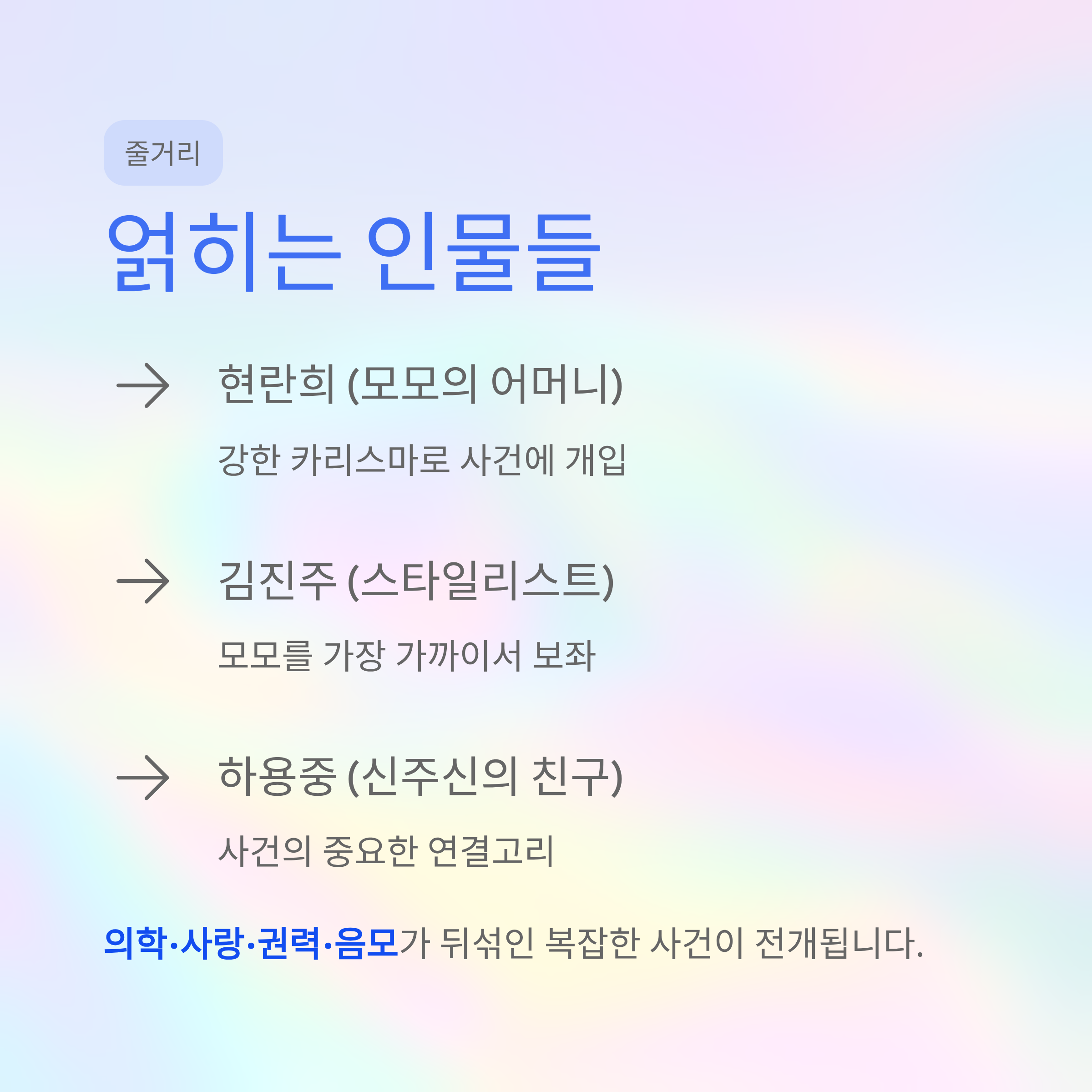 등 다양한 인물들의 이해관계가 얽히면서 의학·사랑·권력·음모가 뒤섞인 사건이 전개됩니다.