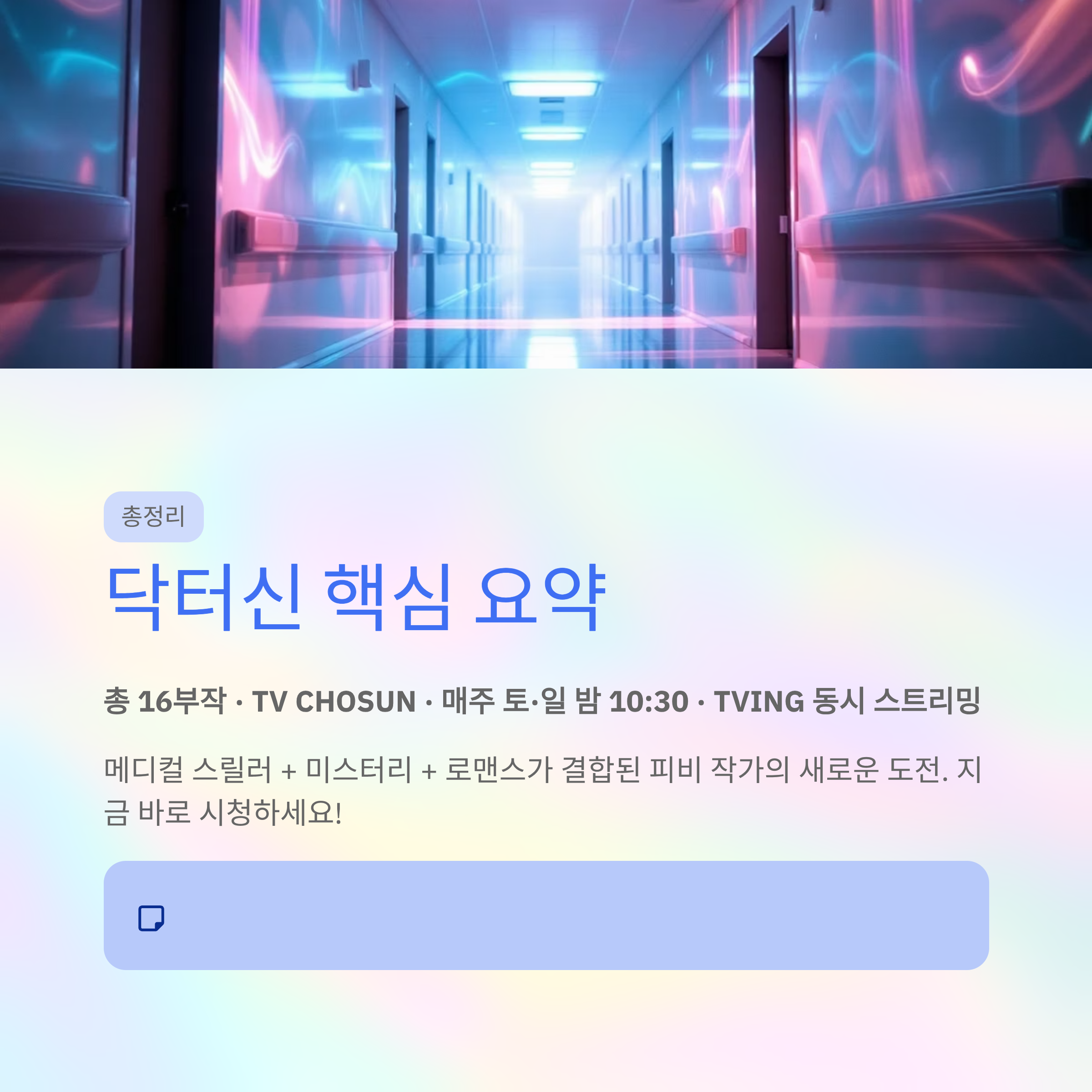 이번 글에서는 닥터신 몇부작인지, 방송 시간, 출연진, 줄거리까지 핵심 정보를 정리해드립니다.
