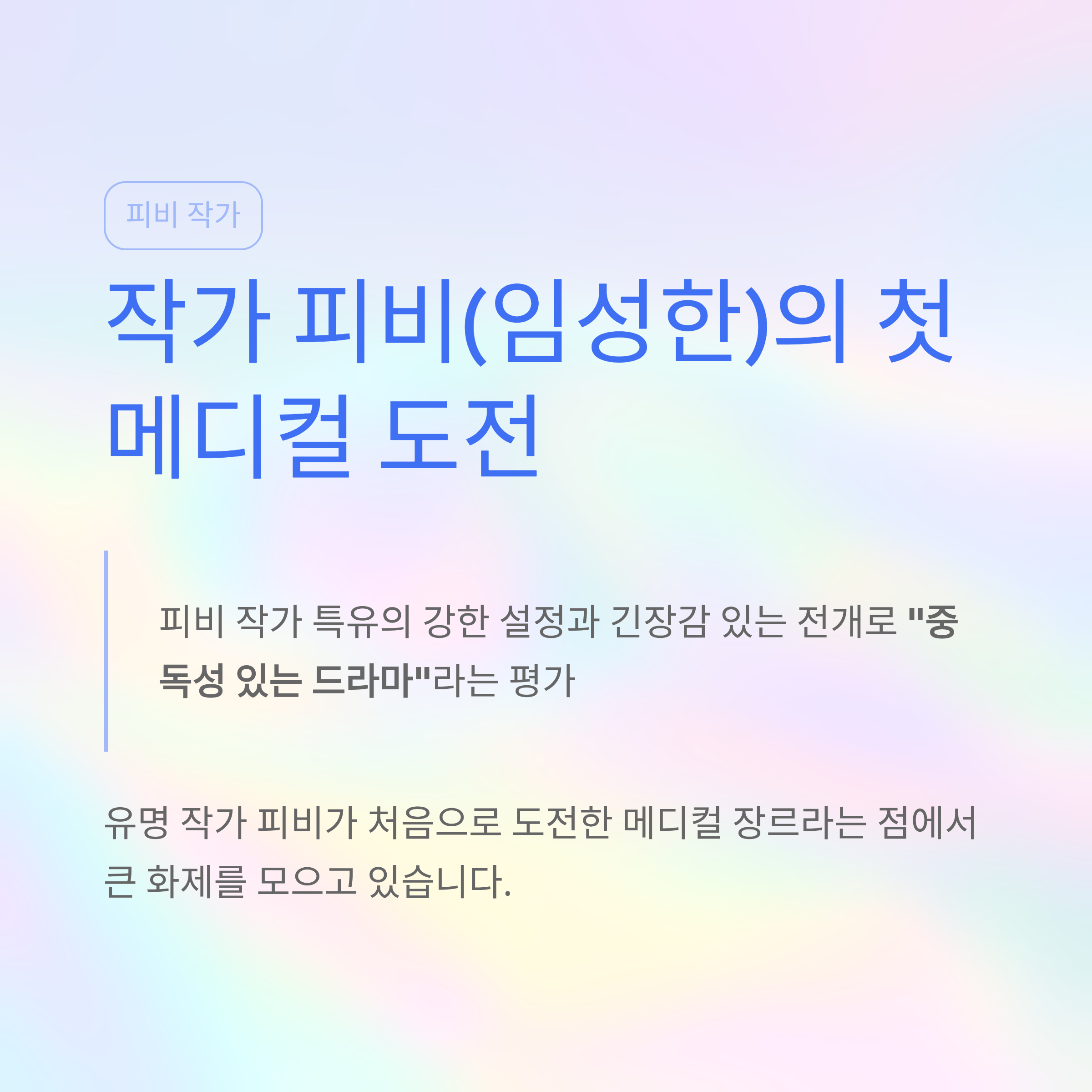 피비 작가 특유의 강한 설정과 긴장감 있는 전개로 중독성 있는 드라마라는 평가를 받고 있습니다.