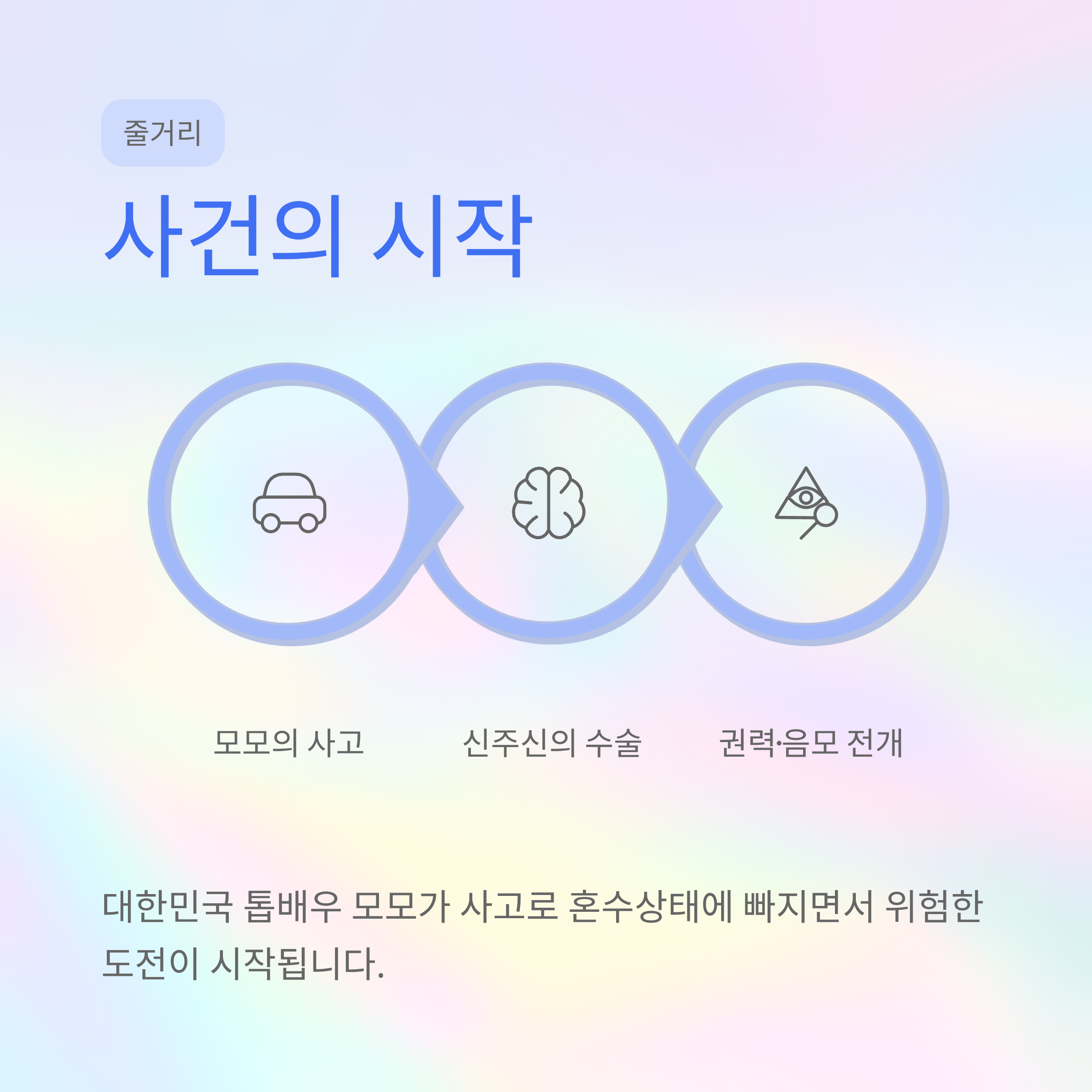 어느 날 대한민국 최고의 톱배우 모모가 사고로 심각한 뇌 손상을 입고 혼수상태에 빠지게 됩니다.