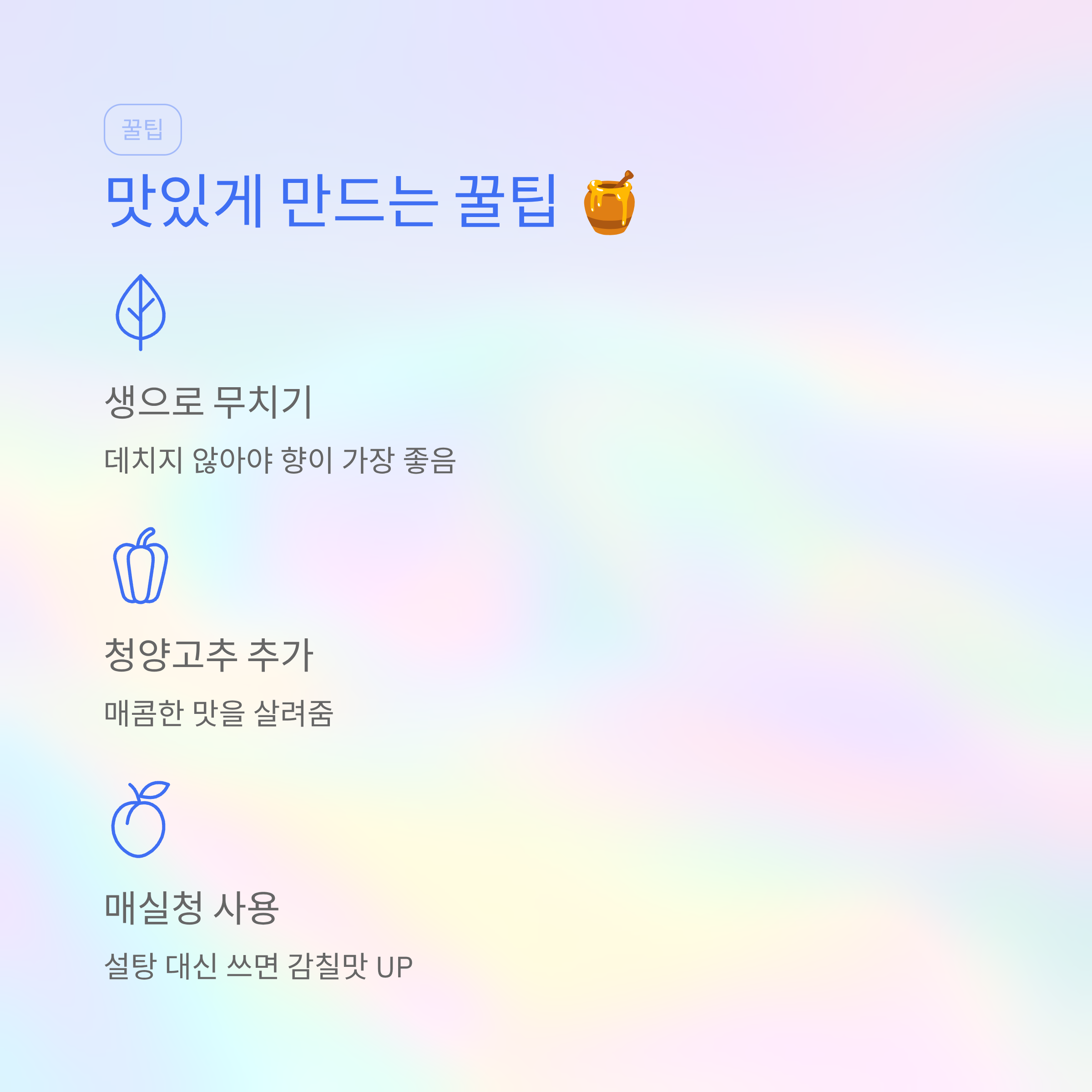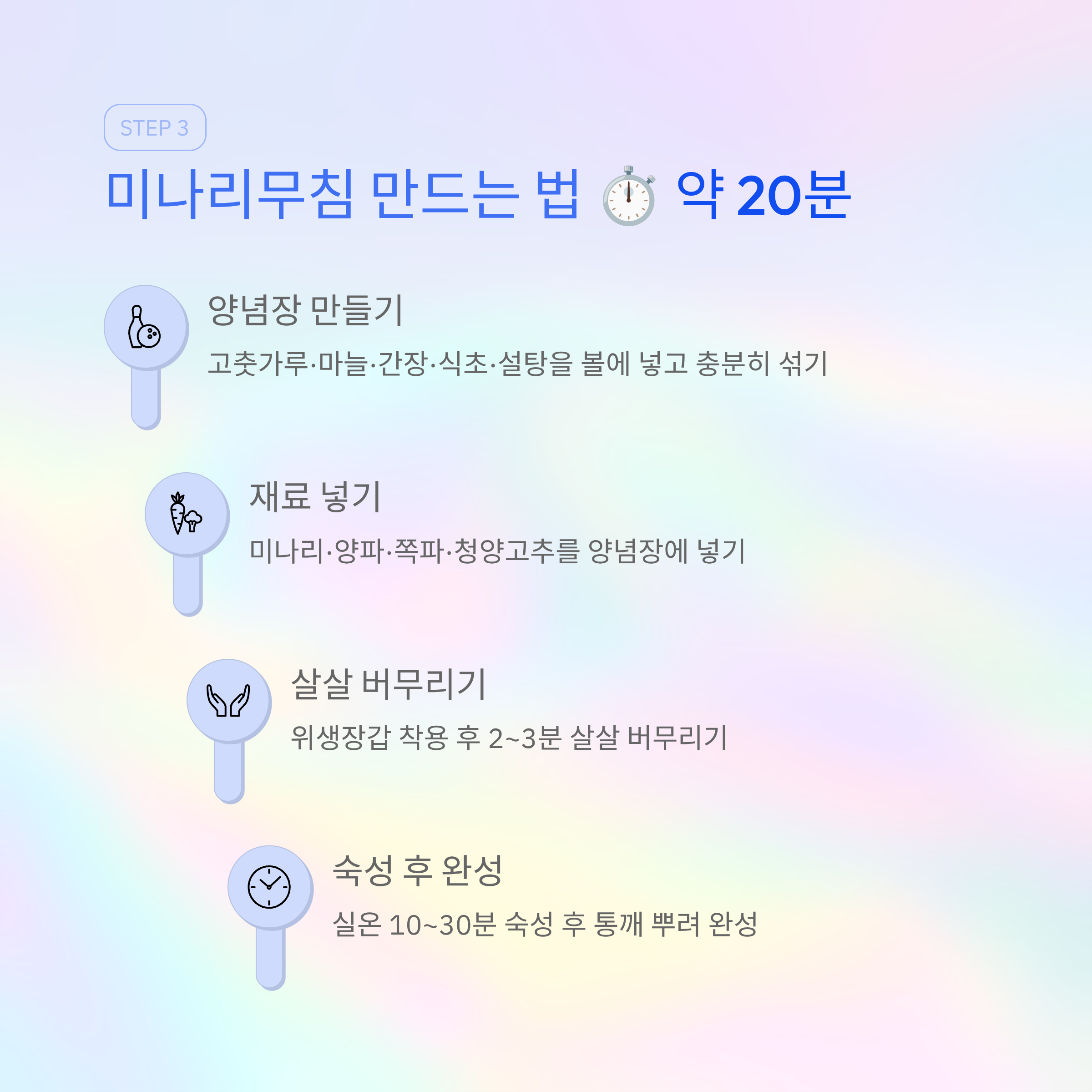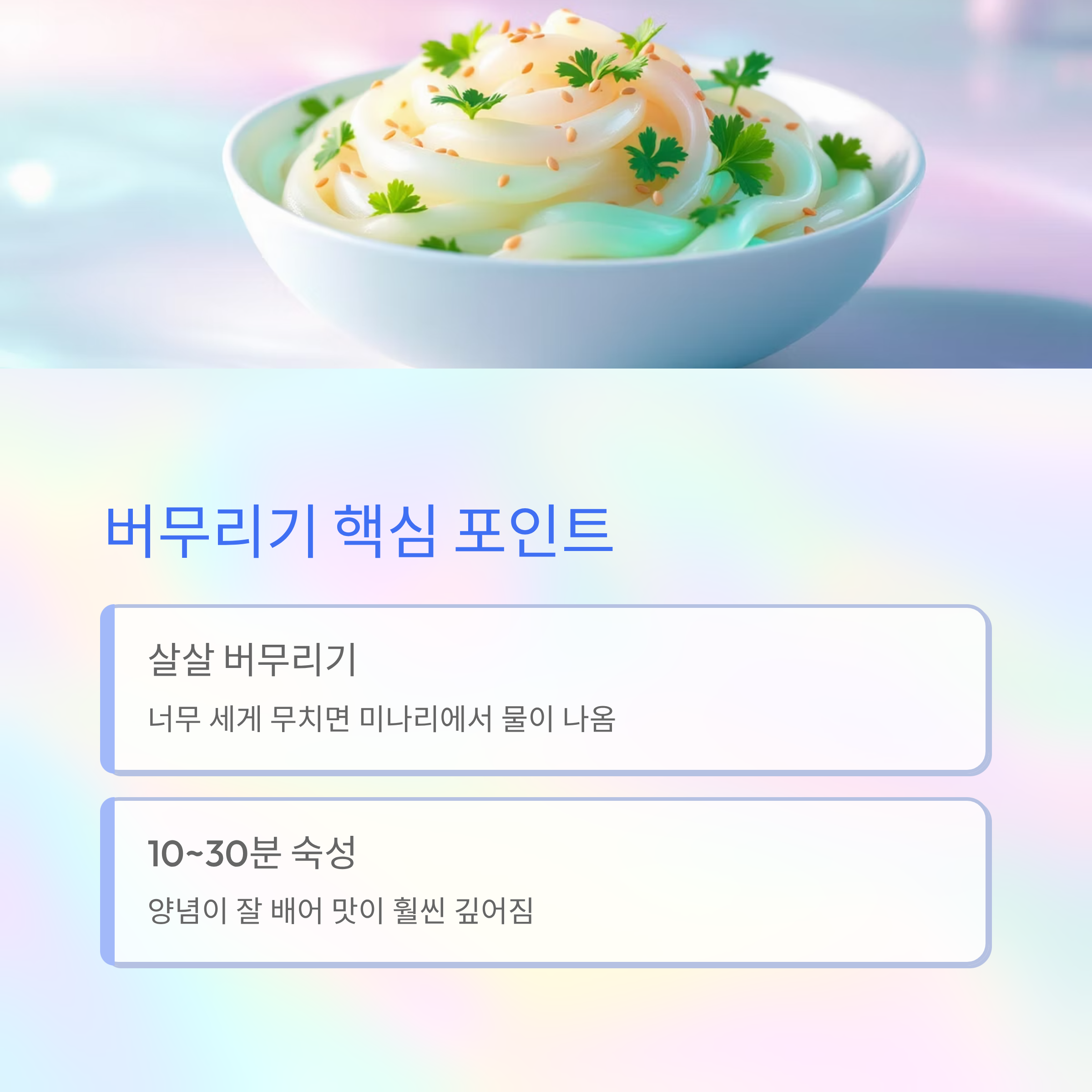 - 무치고 10~20분 정도 숙성시키면 맛이 더 깊어집니다.