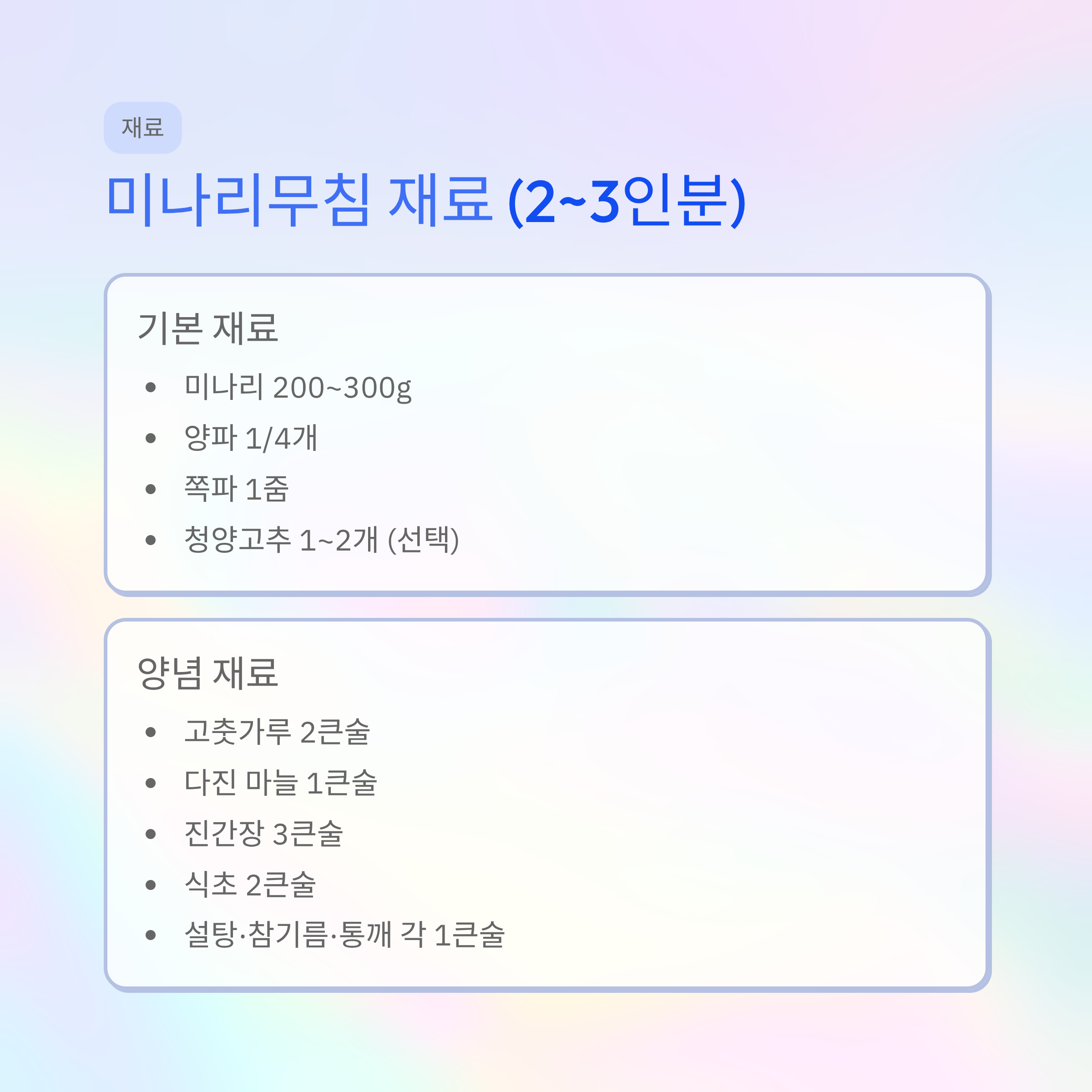 미나리무침 만드는 법: 향긋하고 아삭한 봄나물 반찬 레시피