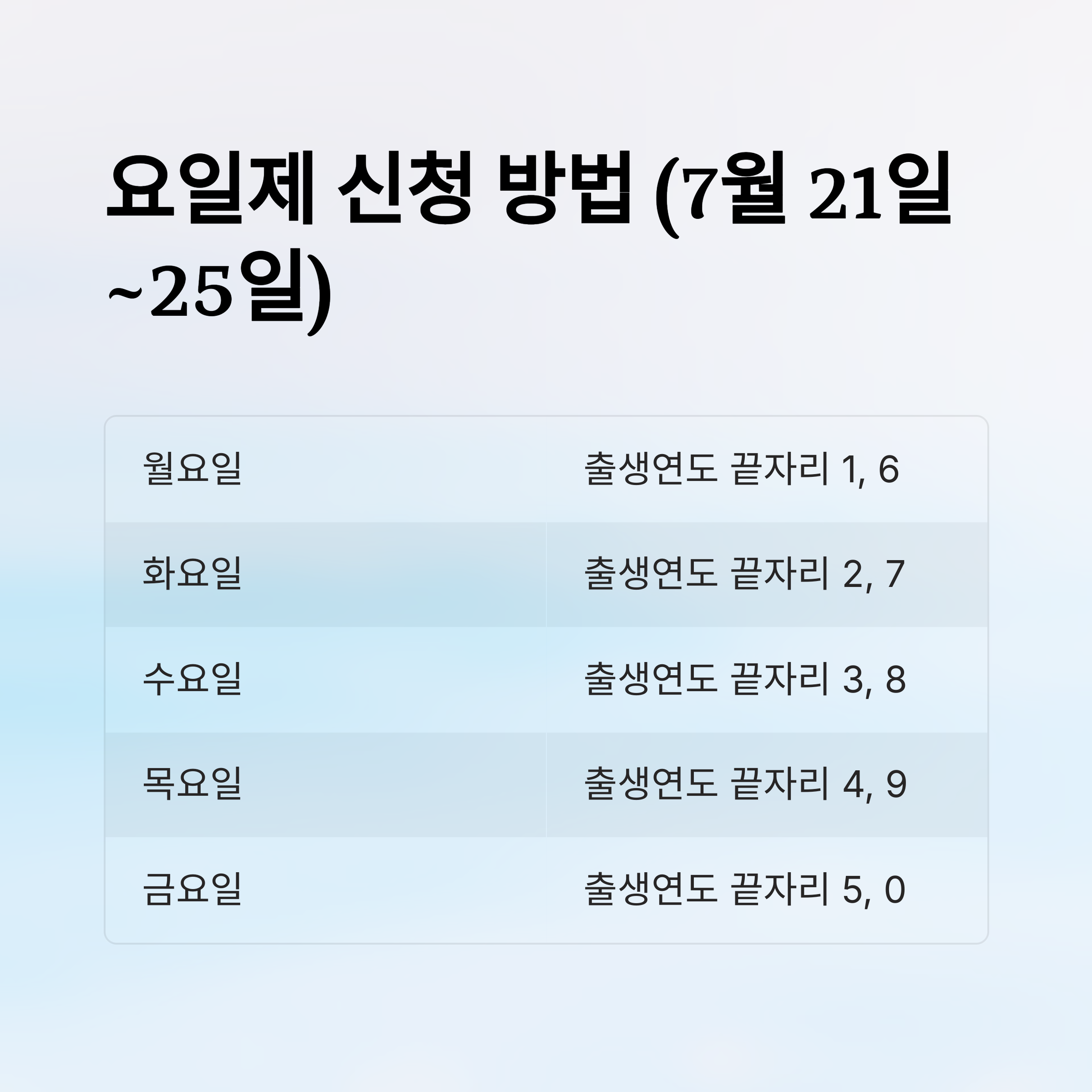 ※ 이후부터는 요일제 없이 자유 신청 가능