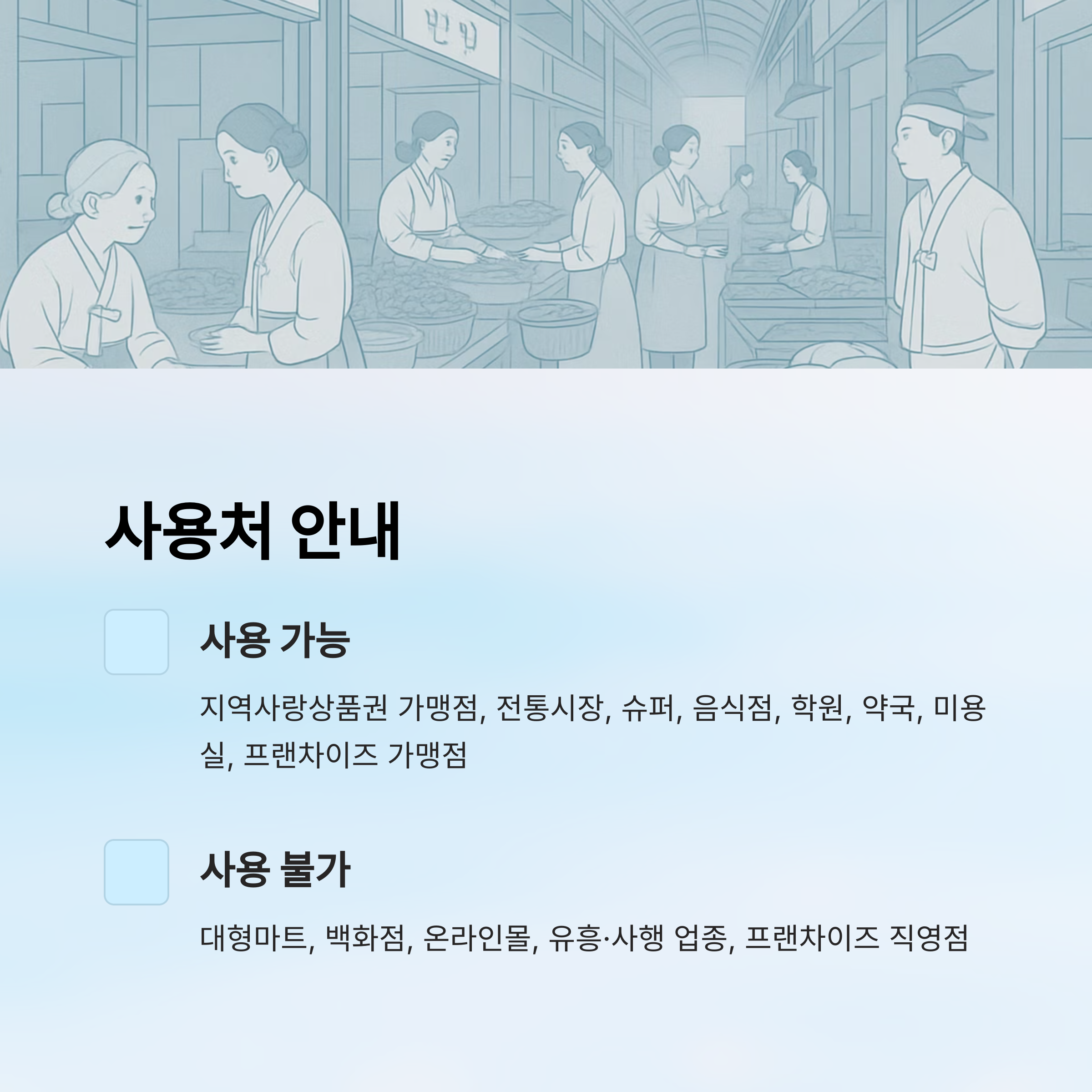 - 지역사랑상품권 가맹점에서 사용 가능
