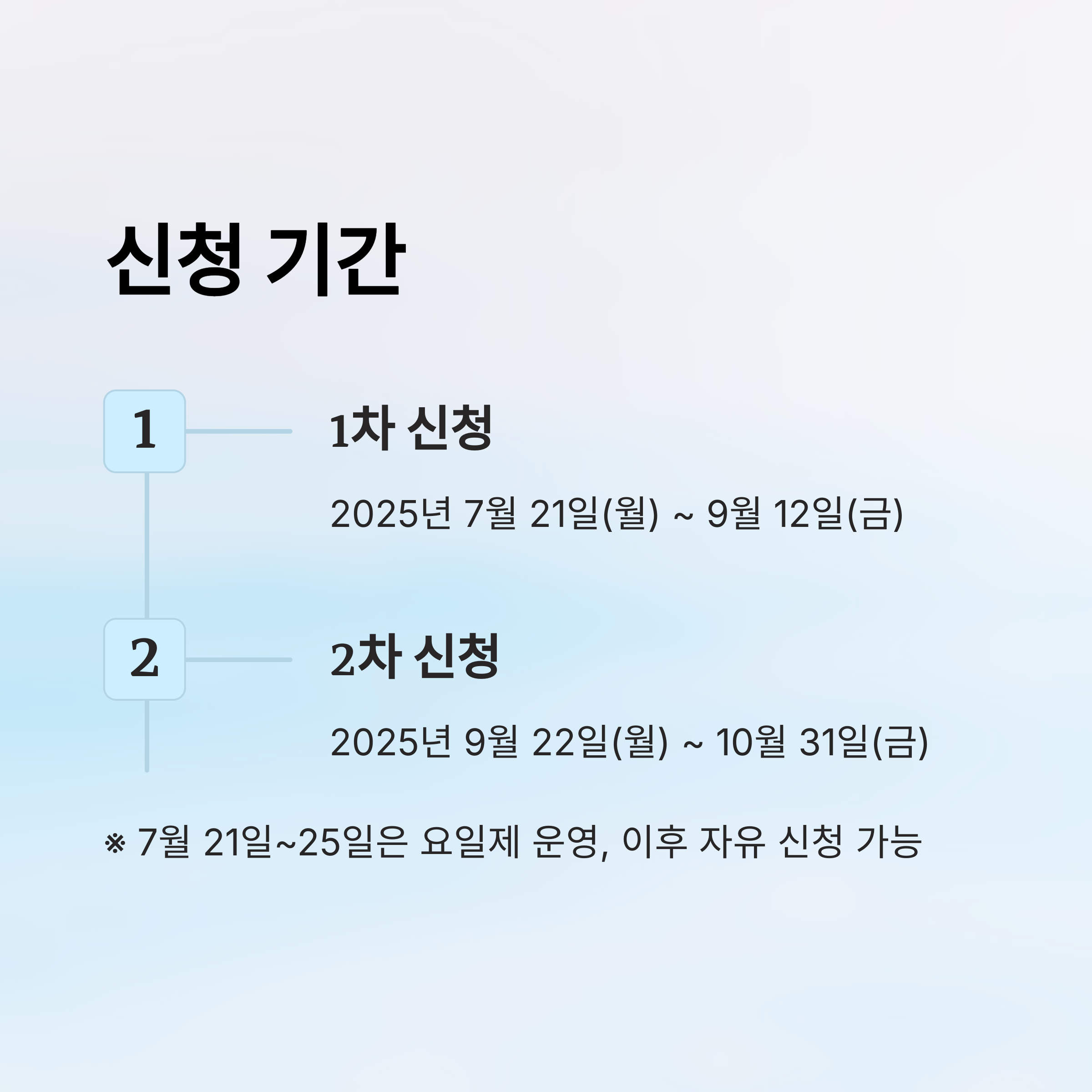 - 1차 신청: 2025년 7월 21일(월) ~ 9월 12일(금)