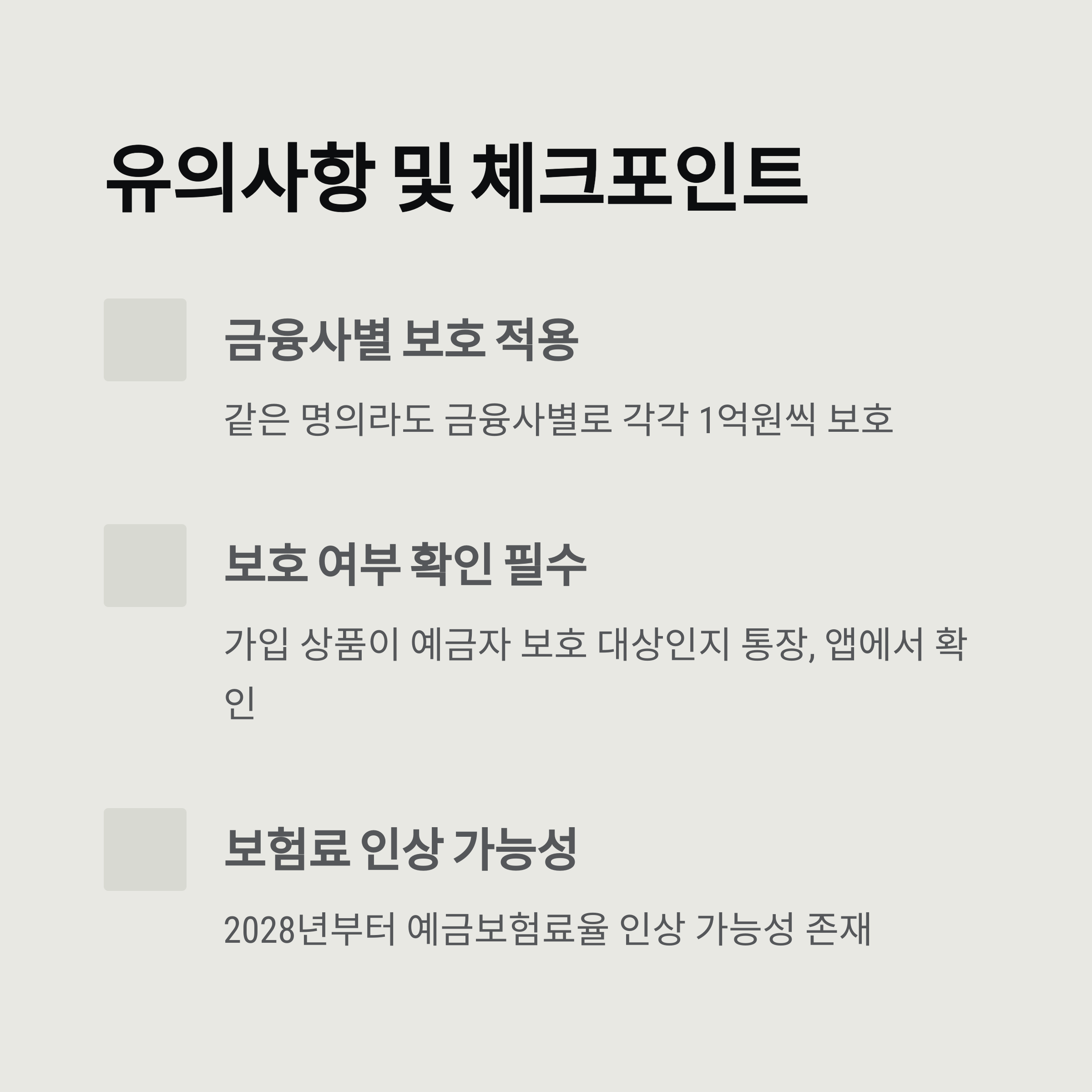 - 유의 상황: 금융사 간 합병이나 계좌 이전 시 일정 기간 별도 보호 한도 인정 예외 규정 존재