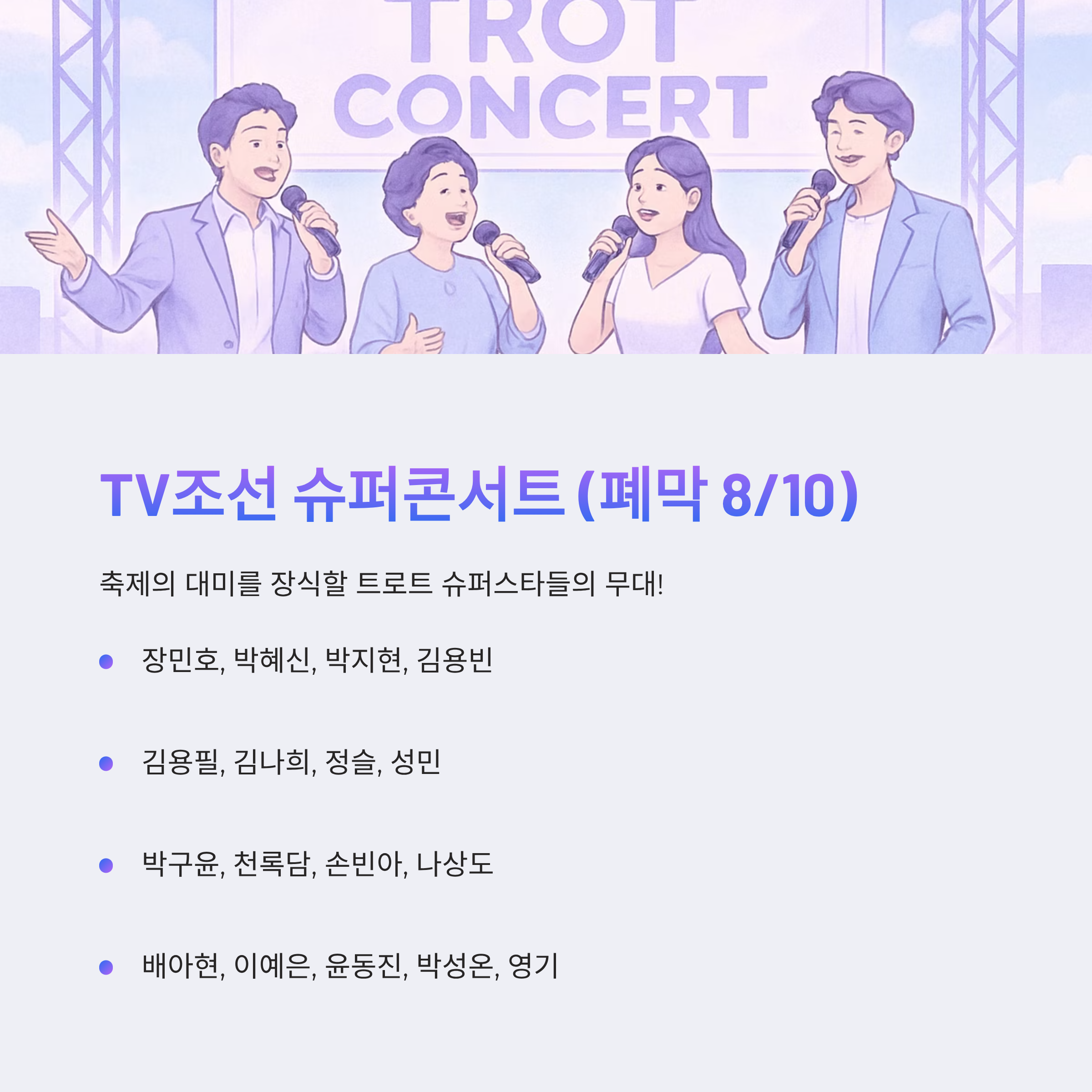 - TV조선 슈퍼콘서트(폐막, 8/10)