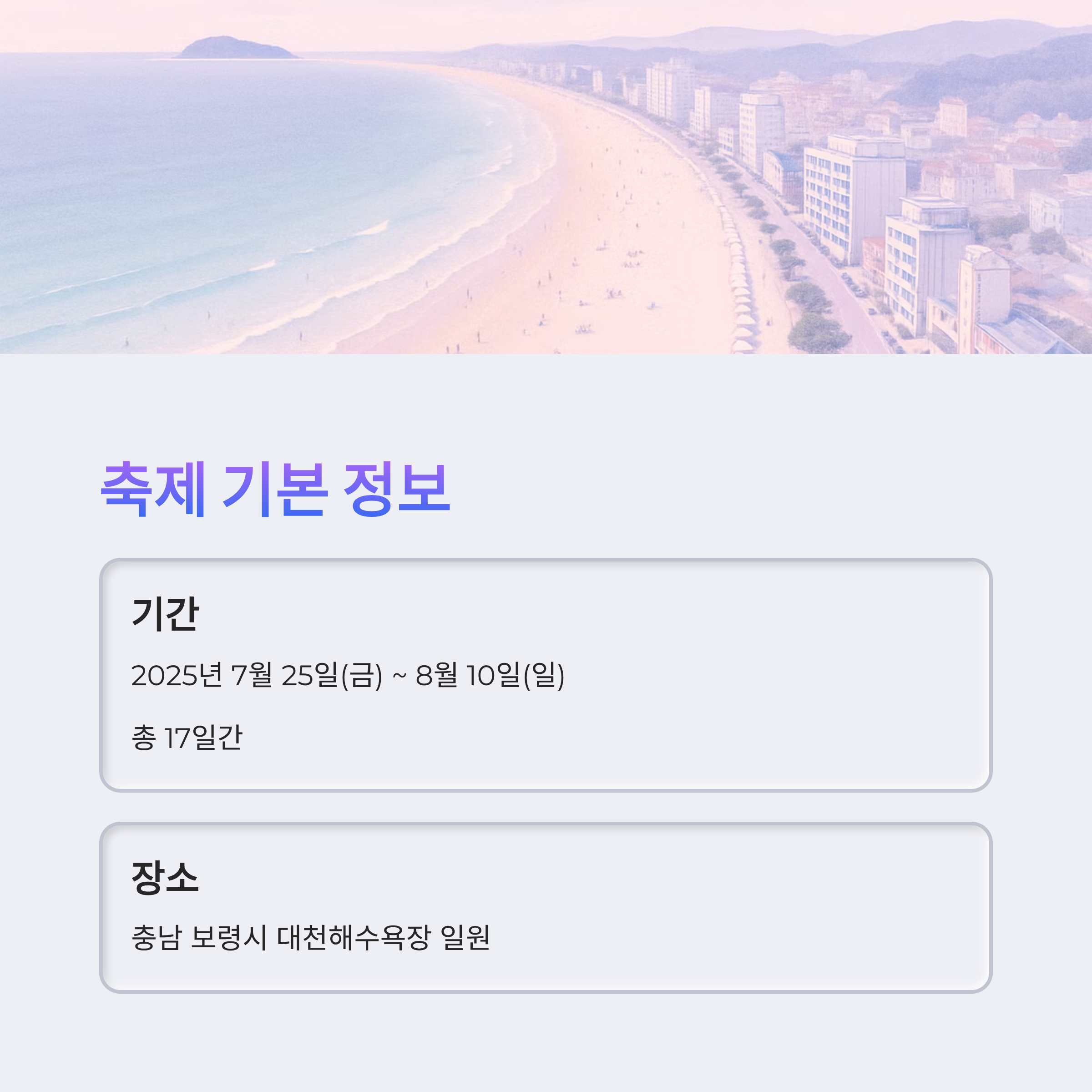 - 축제 기간: 2025년 7월 25일(금) ~ 8월 10일(일) (총 17일간)