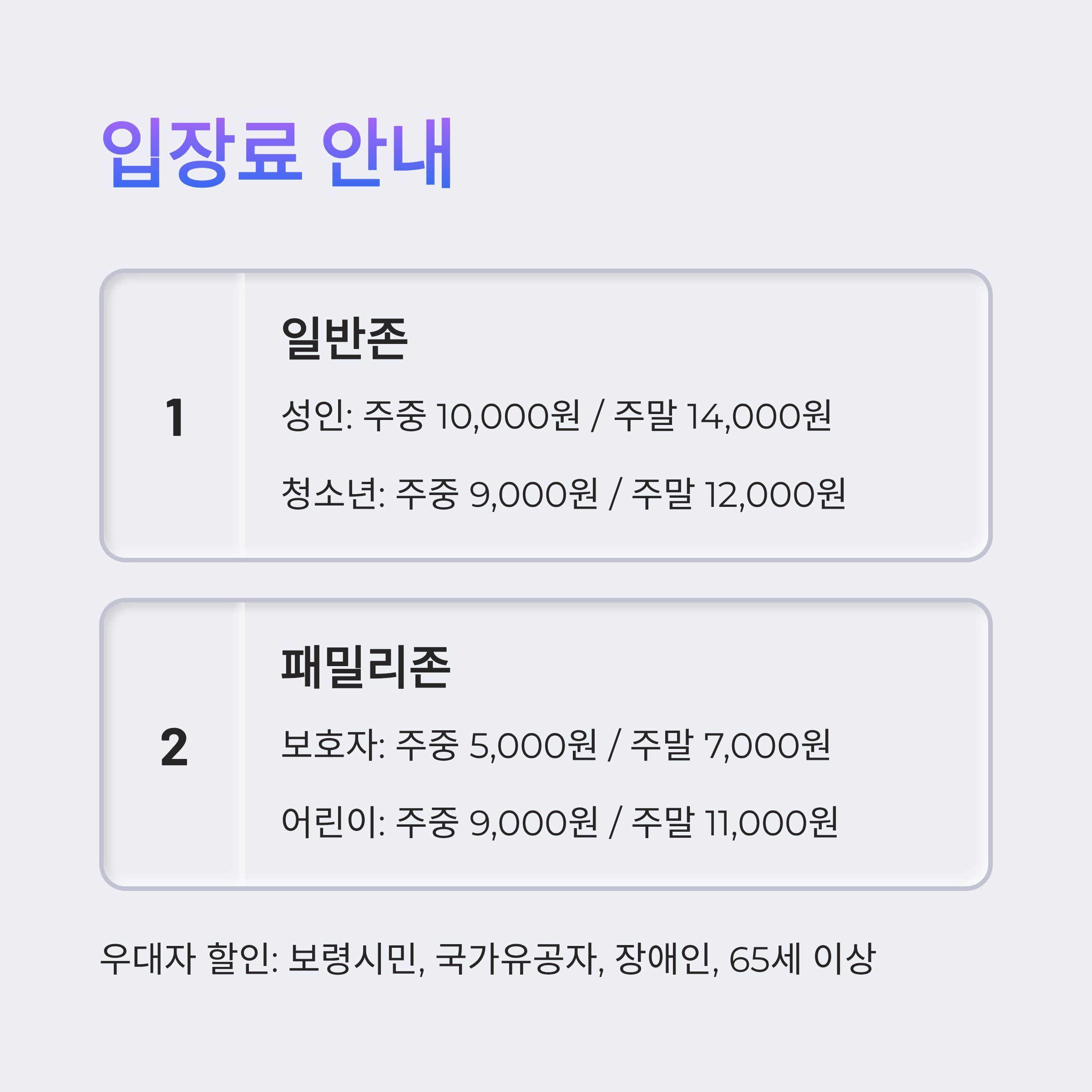 | 일반존 | 성인 | 10,000원 | 14,000원 |