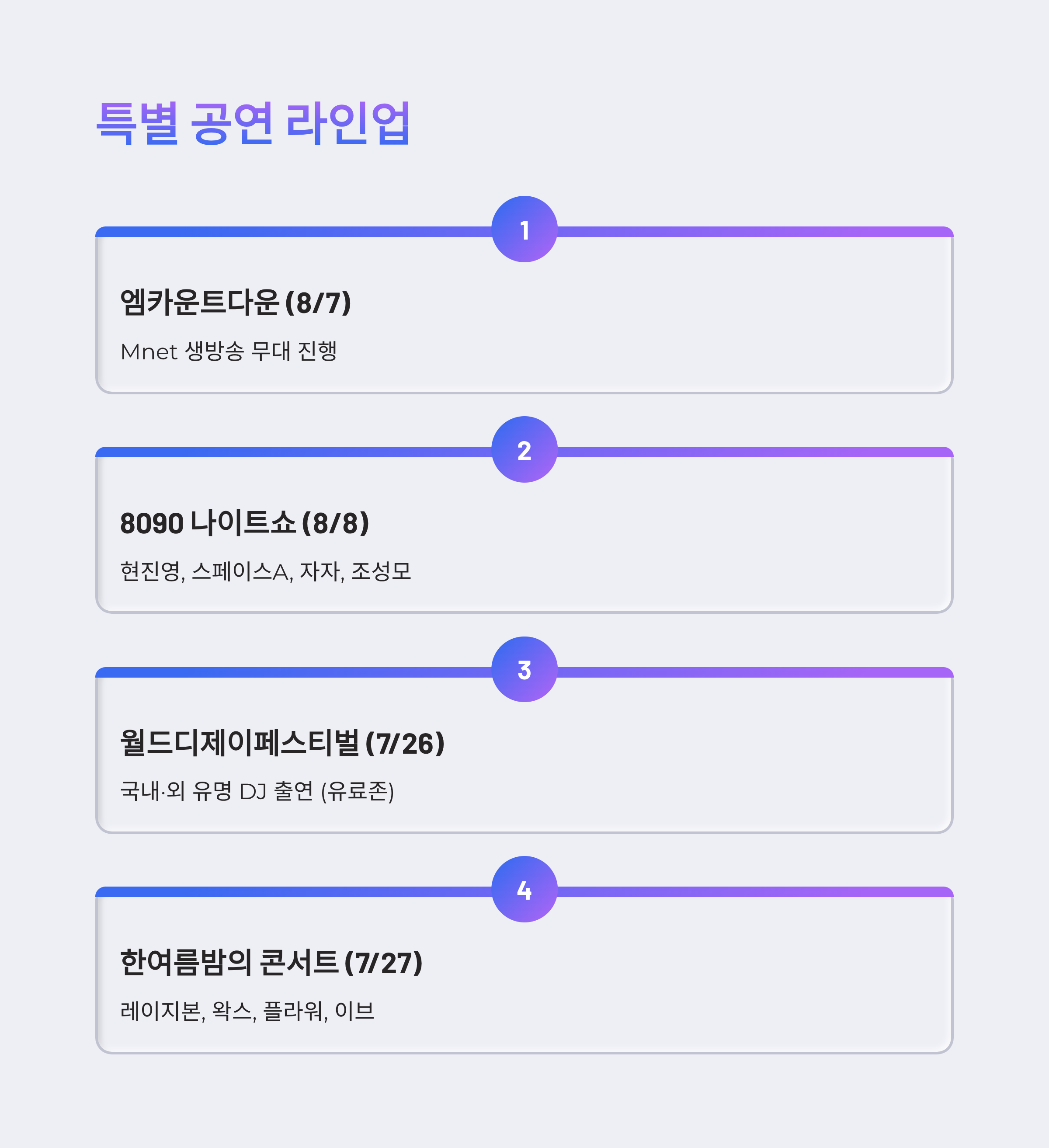 - 8/2: 딘딘, 블루, 비오, 넉살