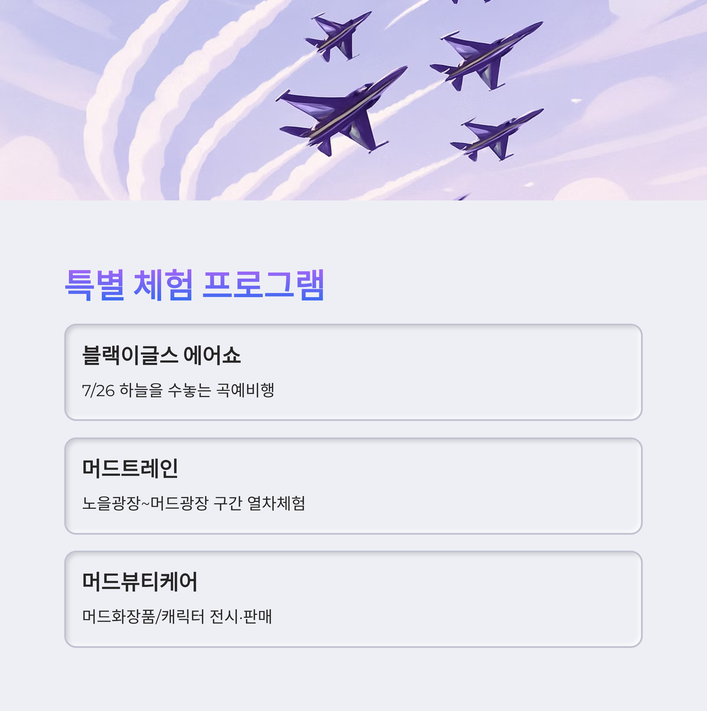 - 블랙이글스 에어쇼: 7/26 하늘 곡예비행