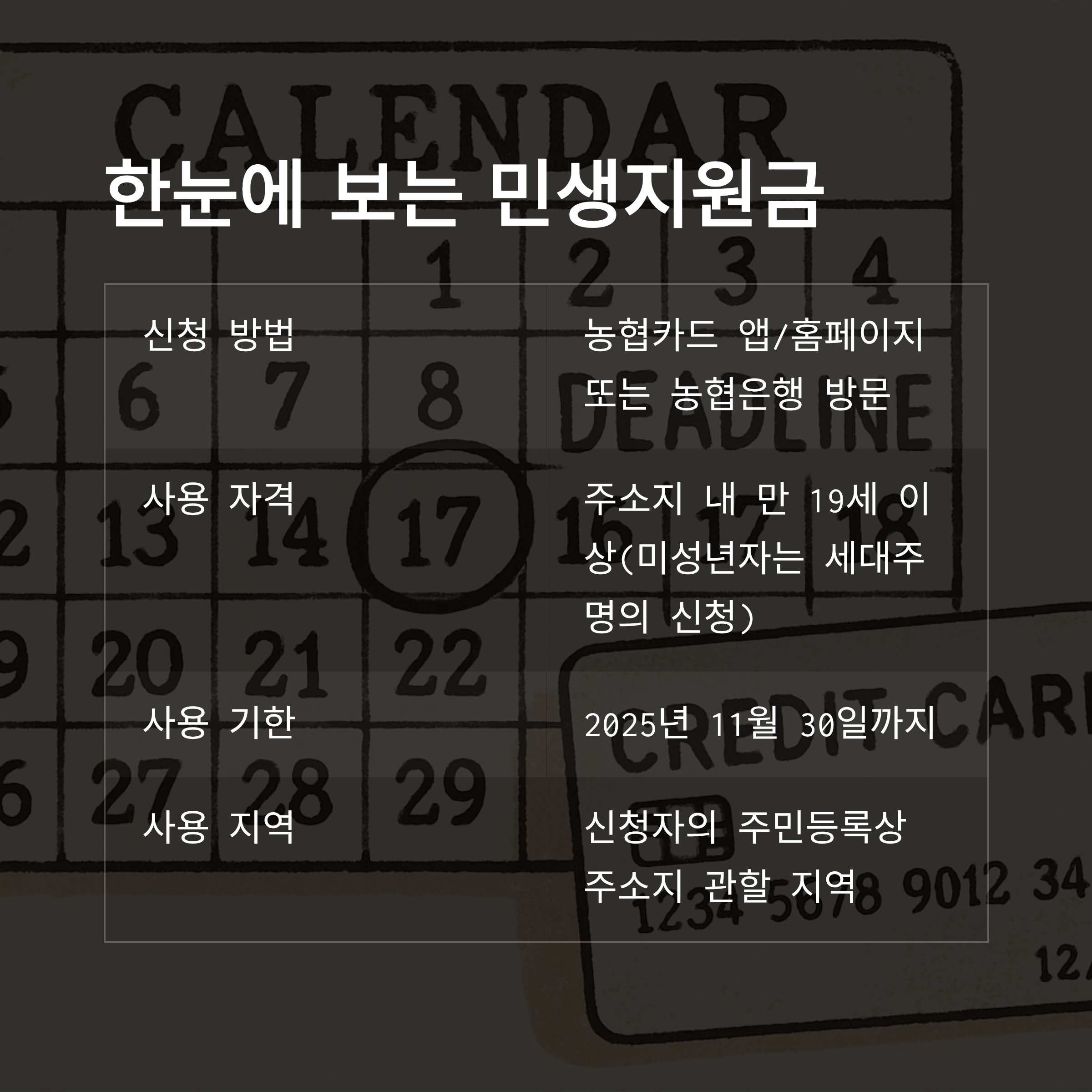 1. 농협카드 민생지원금 신청 대상과 기간