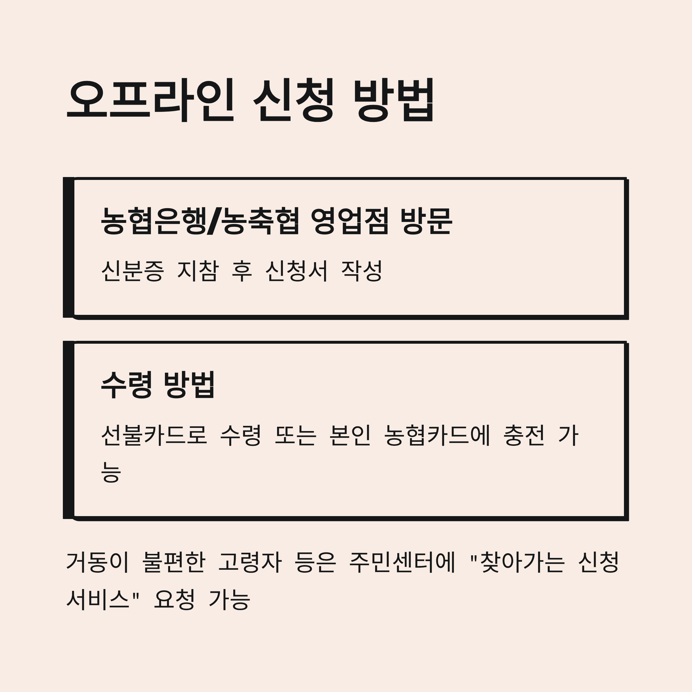 - 선불카드로 수령 또는 본인 농협카드에 충전 가능