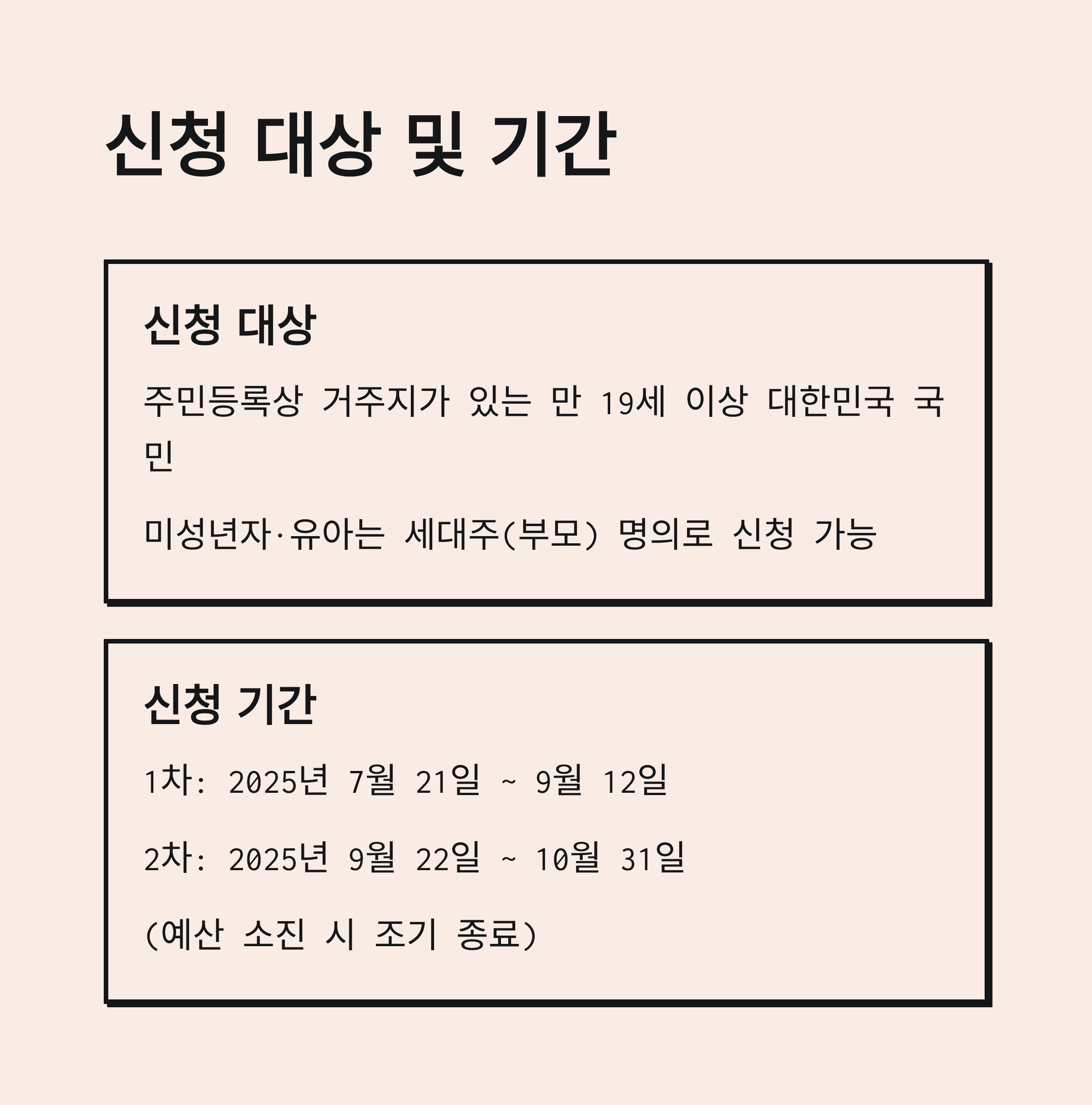 - 1차: 2025년 7월 21일 ~ 9월 12일