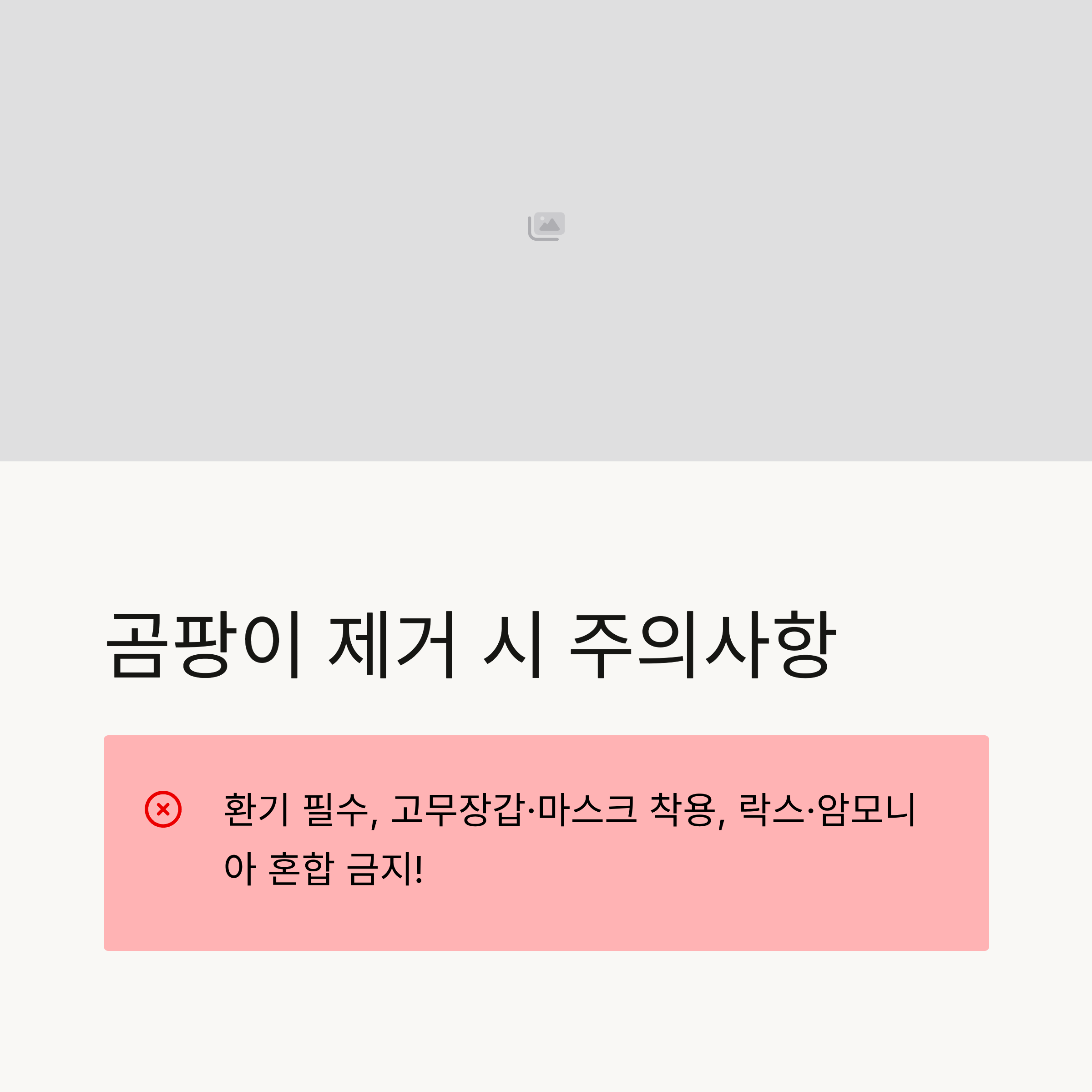 ※ 환기 필수, 고무장갑·마스크 착용, 락스·암모니아 혼합 금지!