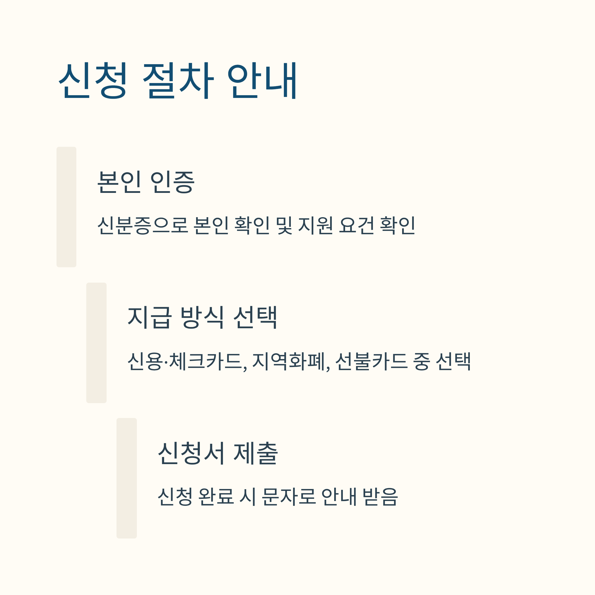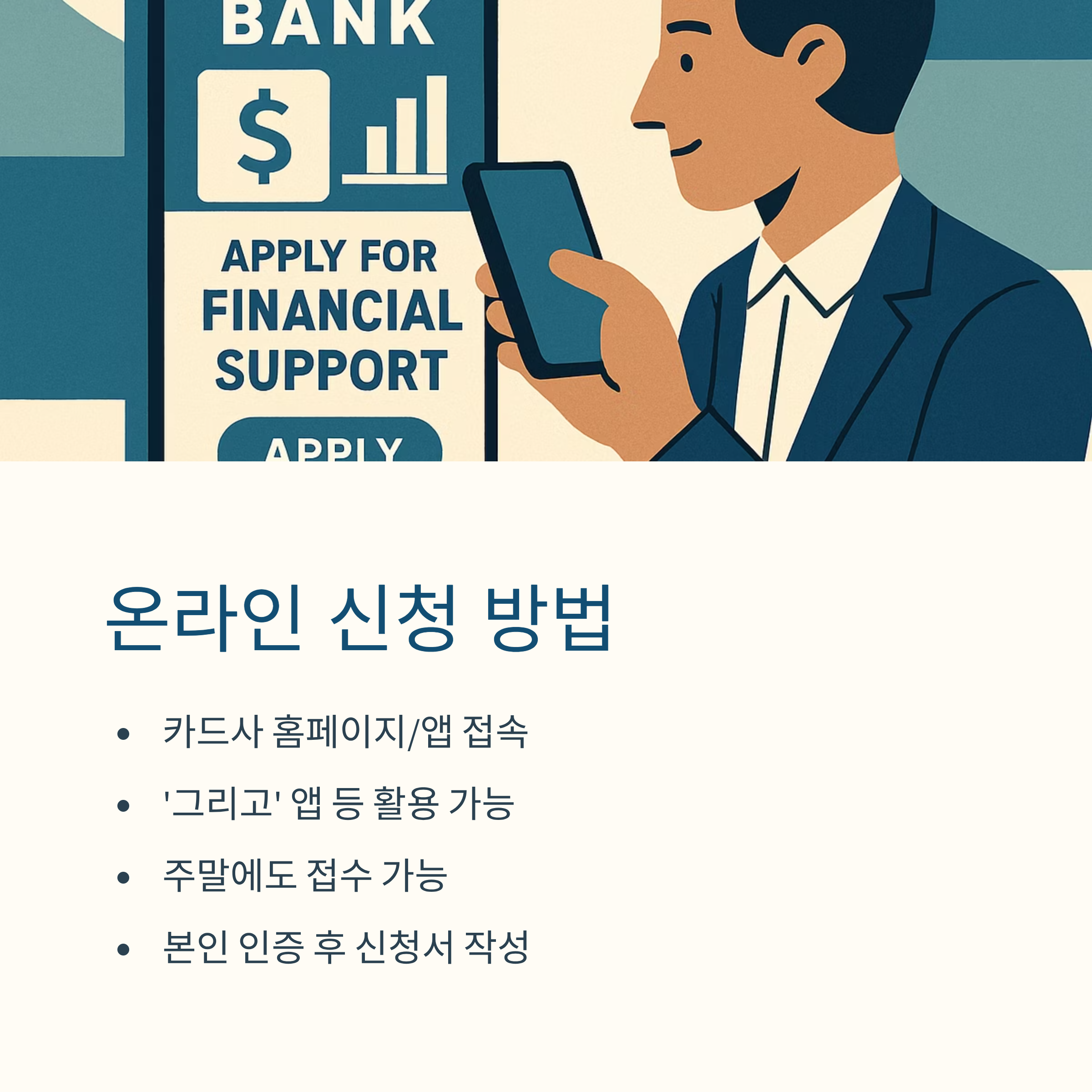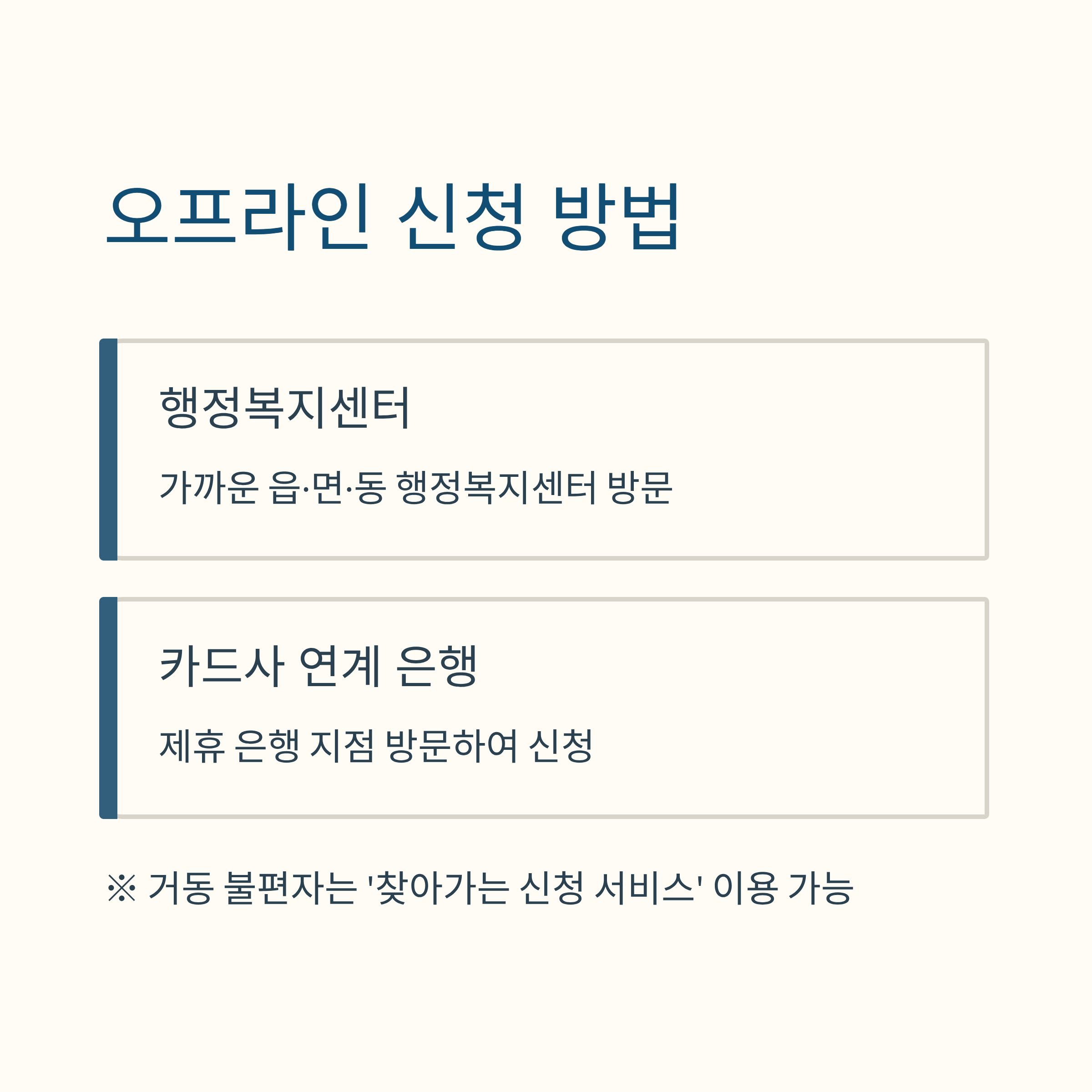 - 오프라인: 읍·면·동 행정복지센터, 카드사 연계 은행 방문