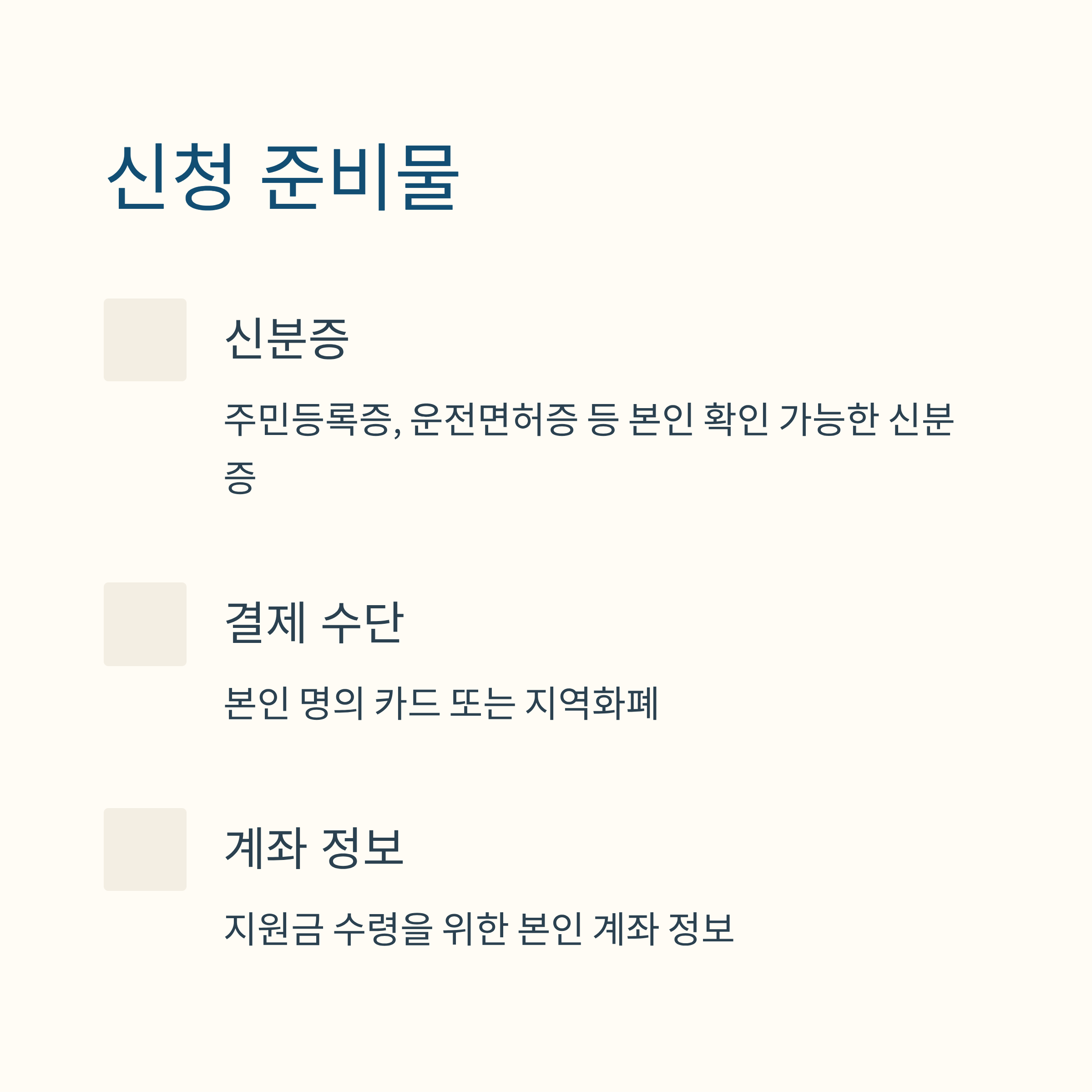- 본인 명의 카드 또는 지역화폐 계좌 정보