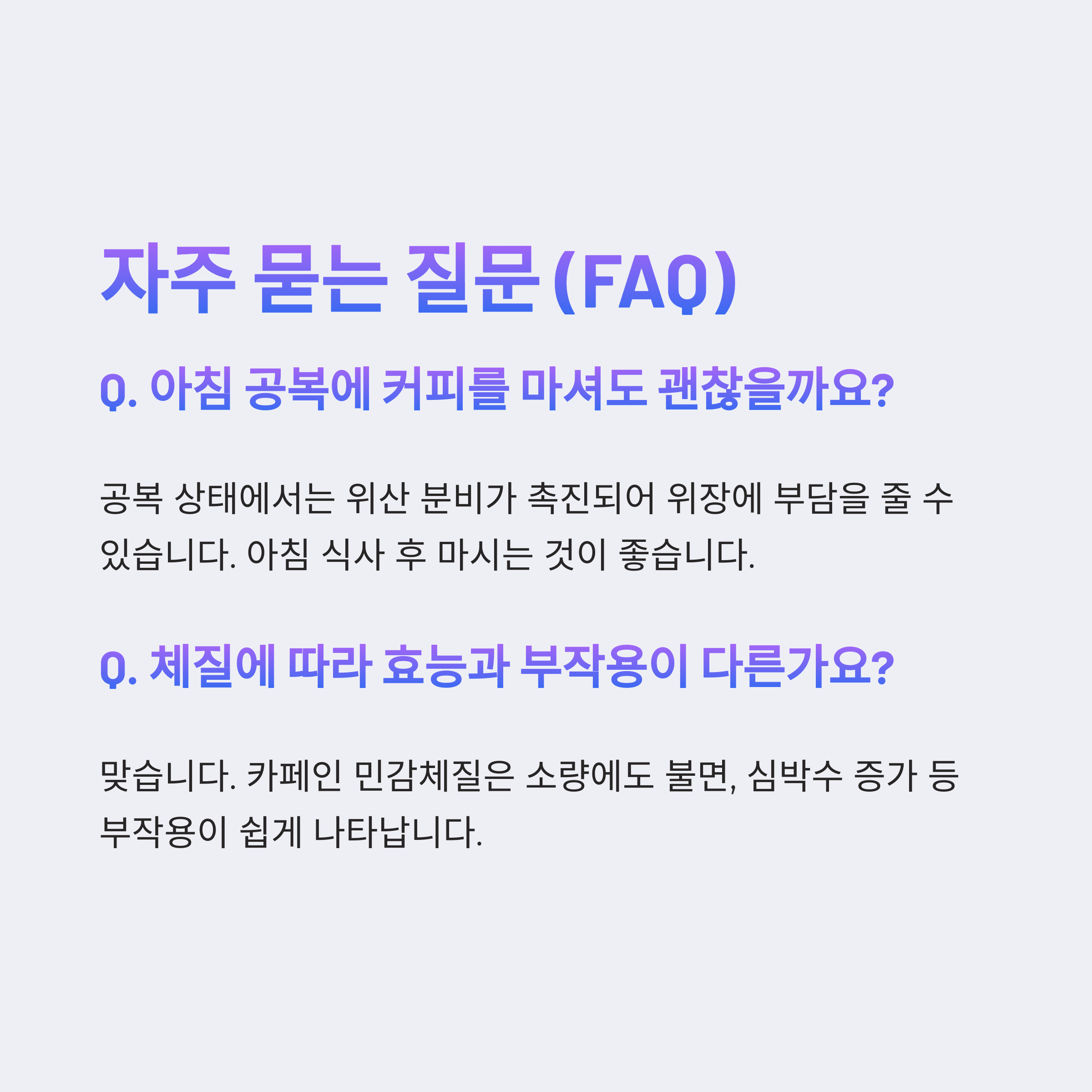 Q1. 커피 효능과 부작용을 고려했을 때, 아침 공복에 마셔도 괜찮을까요?