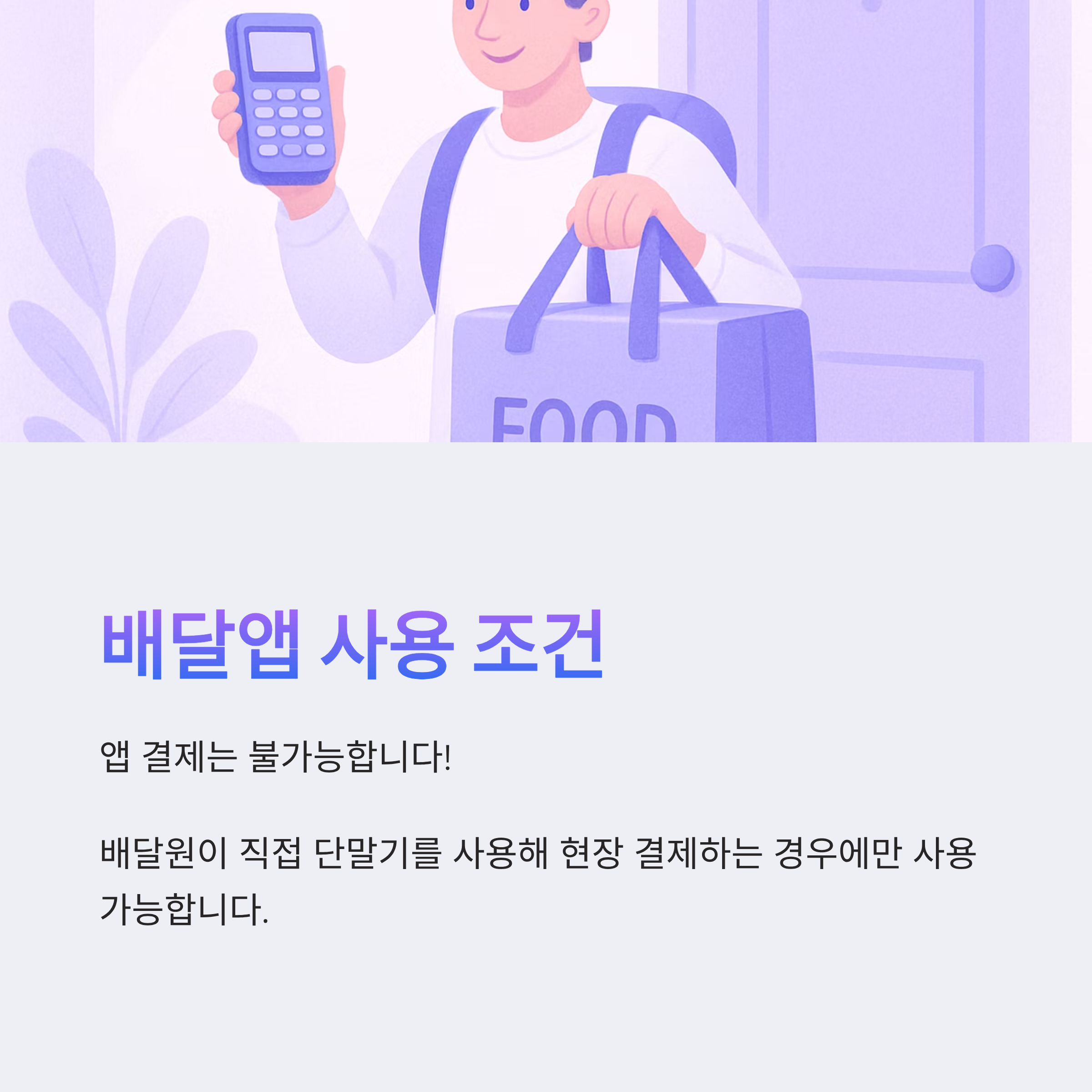 - 배달원이 직접 단말기를 사용해 현장 결제하는 경우에만 사용 가능