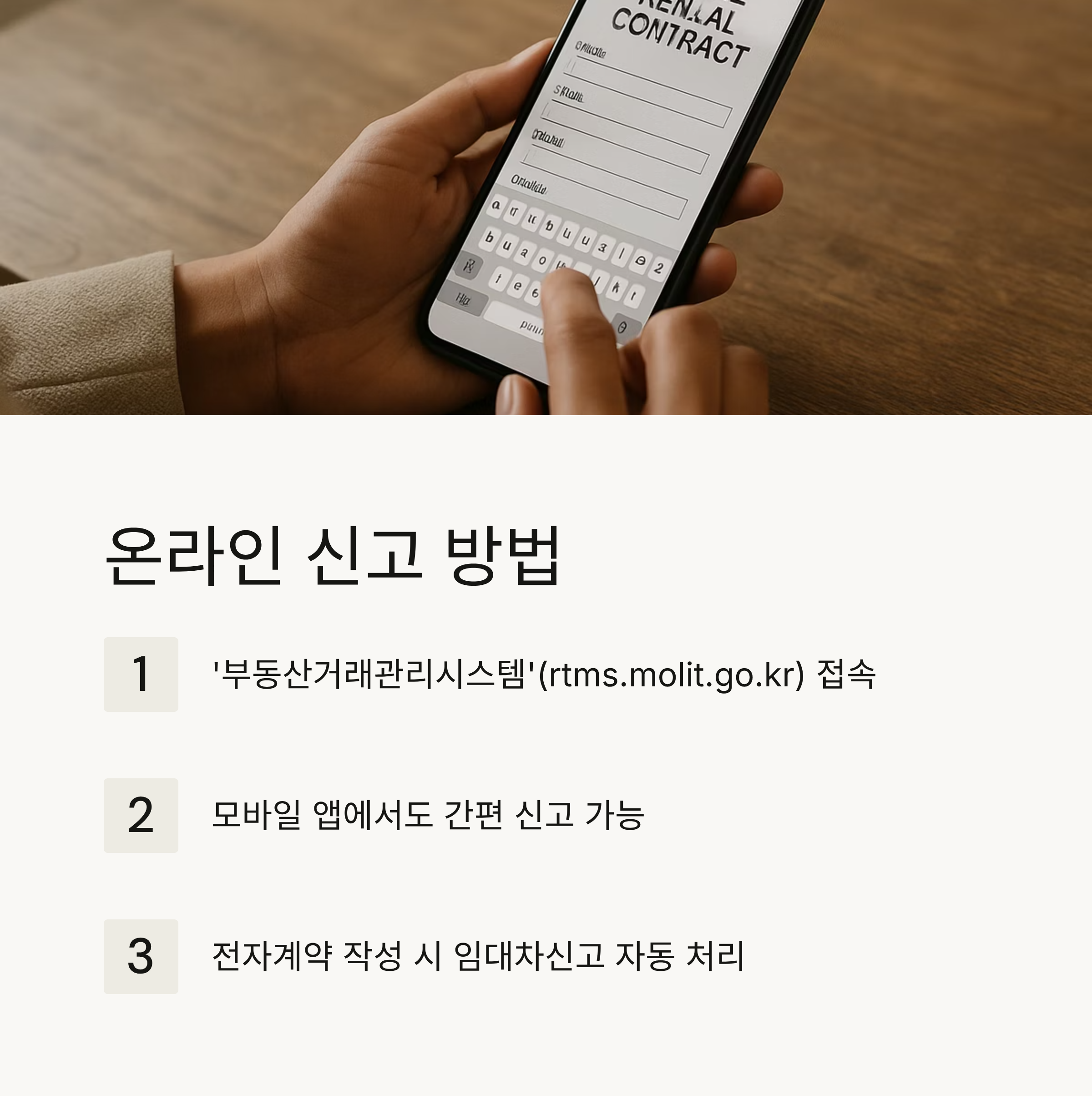- ‘부동산거래관리시스템’(rtms.molit.go.kr) 및 모바일 앱에서 간편 신고