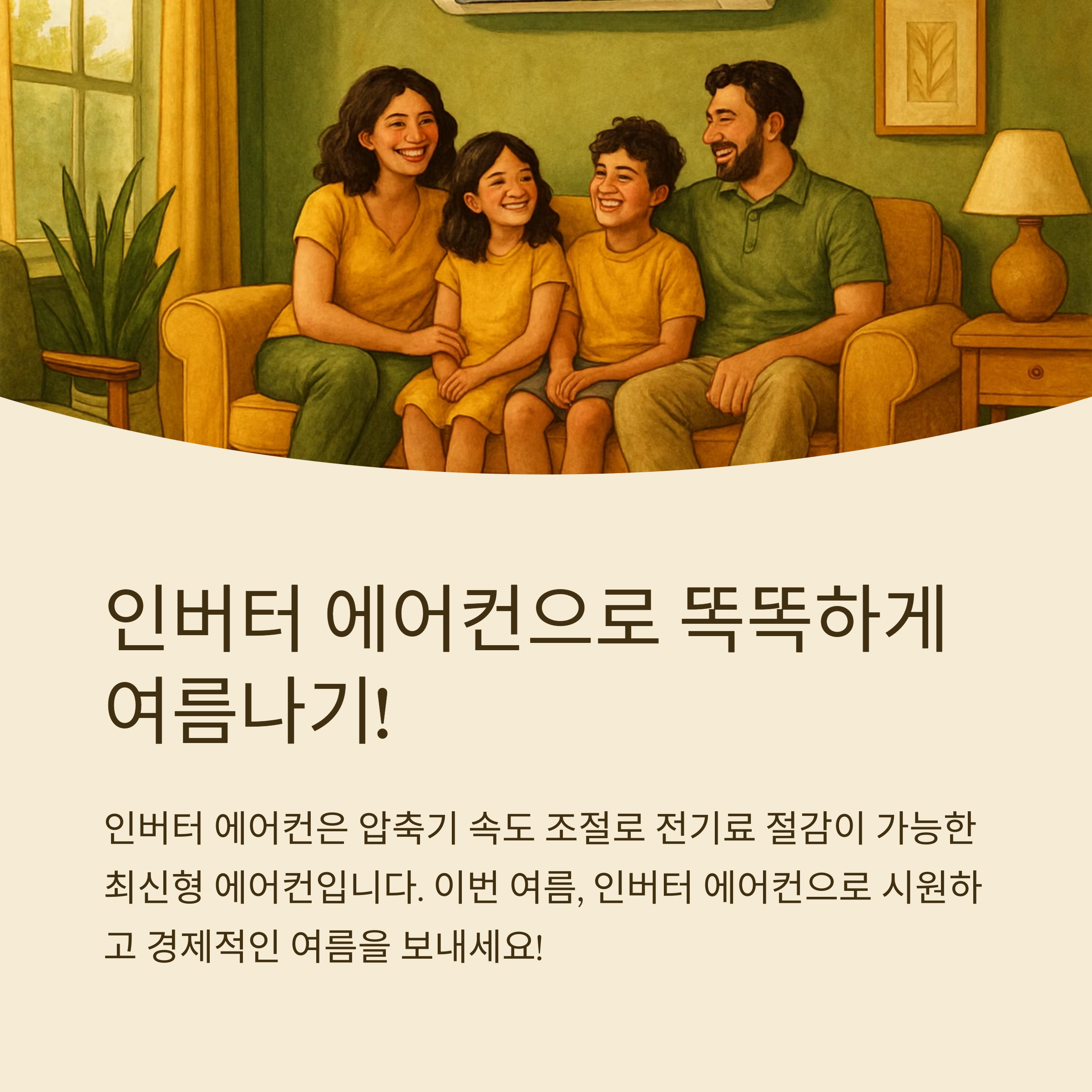 반면 인버터 에어컨은 희망 온도 도달 후 압축기 속도를 낮춰 최소 전력만으로 유지하기 때문에 장시간 사용할수록 유리합니다.