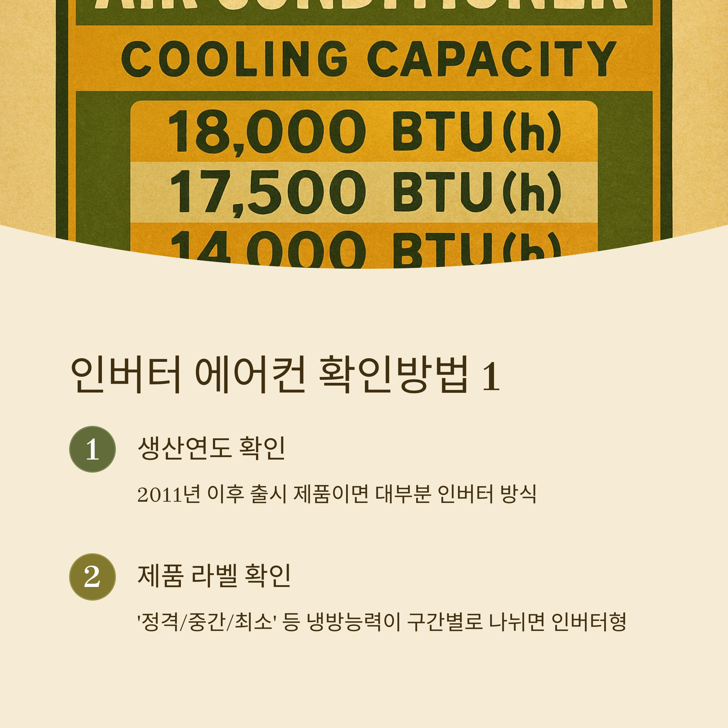 | 제품 라벨 | ‘정격/중간/최소’ 등 냉방능력이 구간별로 나뉘면 인버터형 |