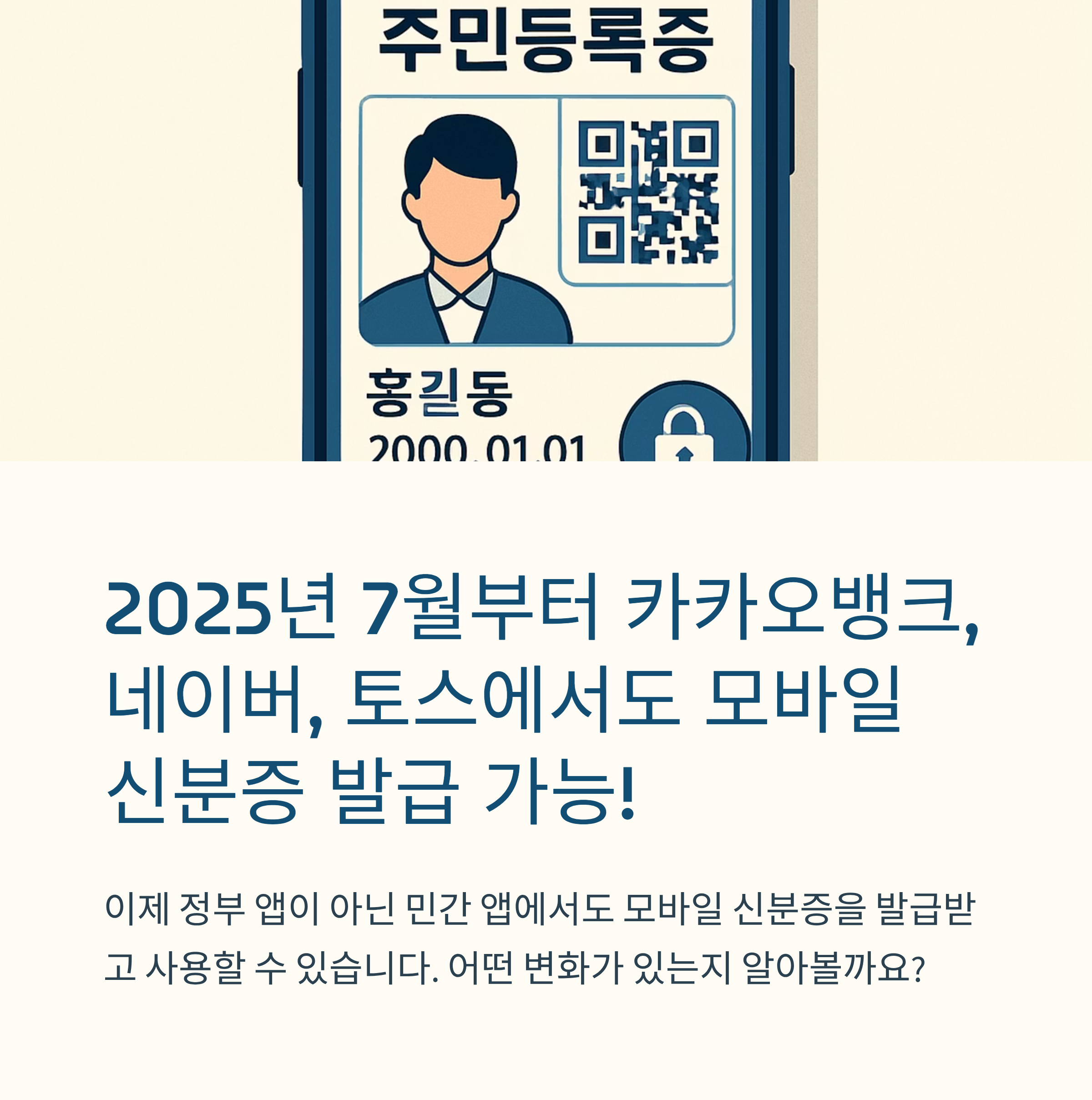 2025년 7월 23일부터 카카오뱅크, 네이버, 토스, 국민은행, 농협은행 앱에서도 모바일 신분증을 발급받을 수 있게 되었습니다. 그동안 정부 앱과 삼성월렛에만 국한되던 서비스가 이제는 민간 앱으로 대폭 확대되었습니다.