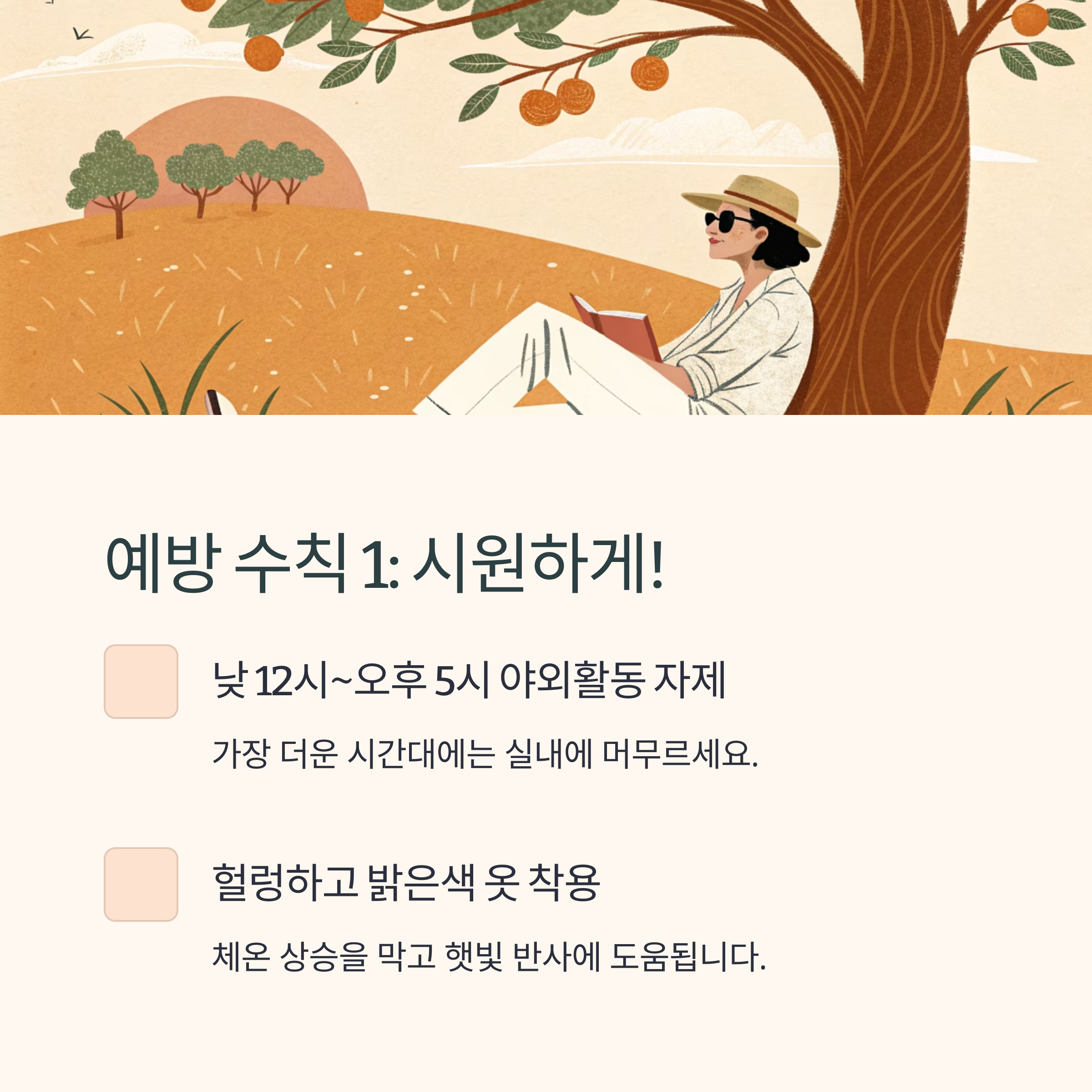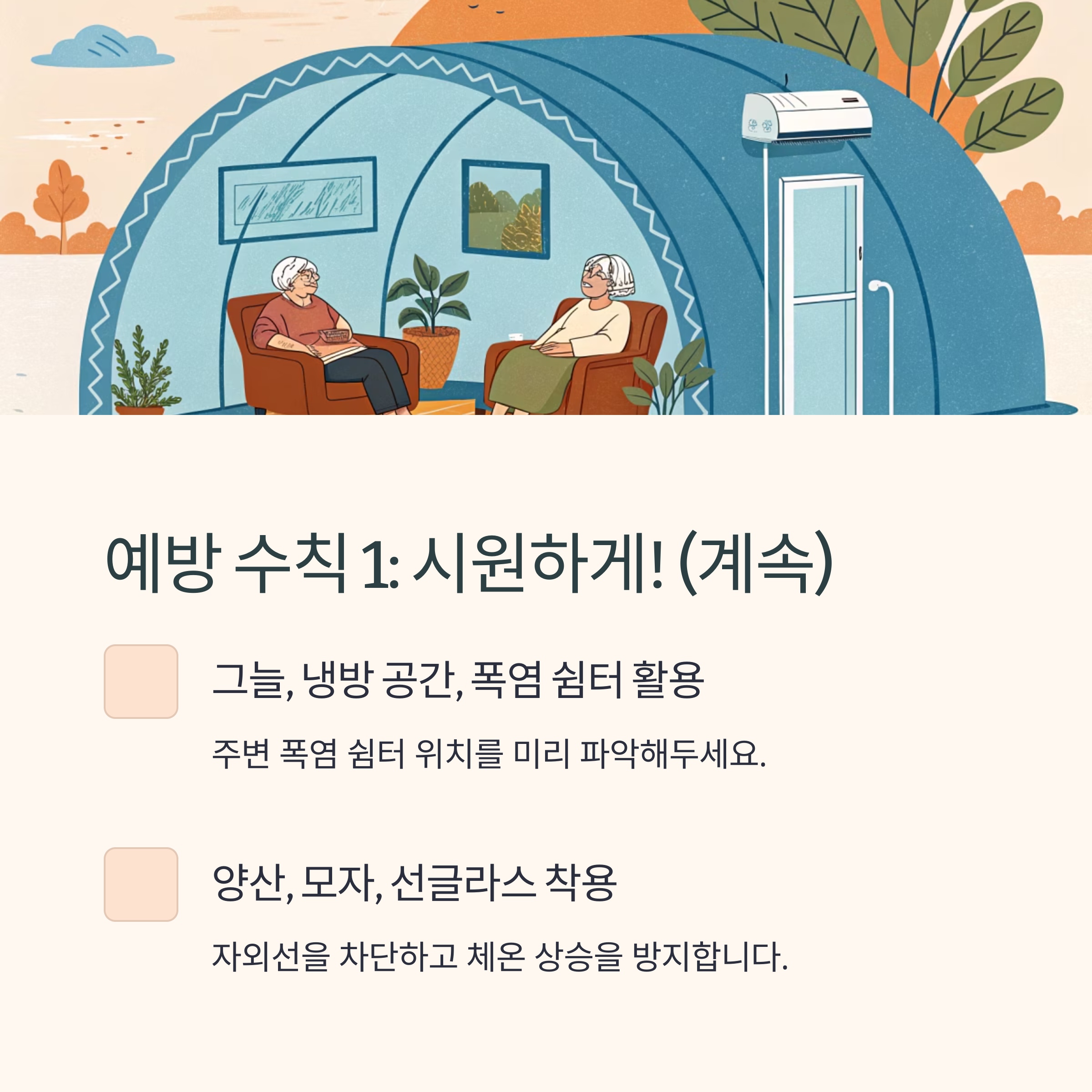 무더위는 누구에게나 위험하지만, 예방은 누구나 실천할 수 있습니다.