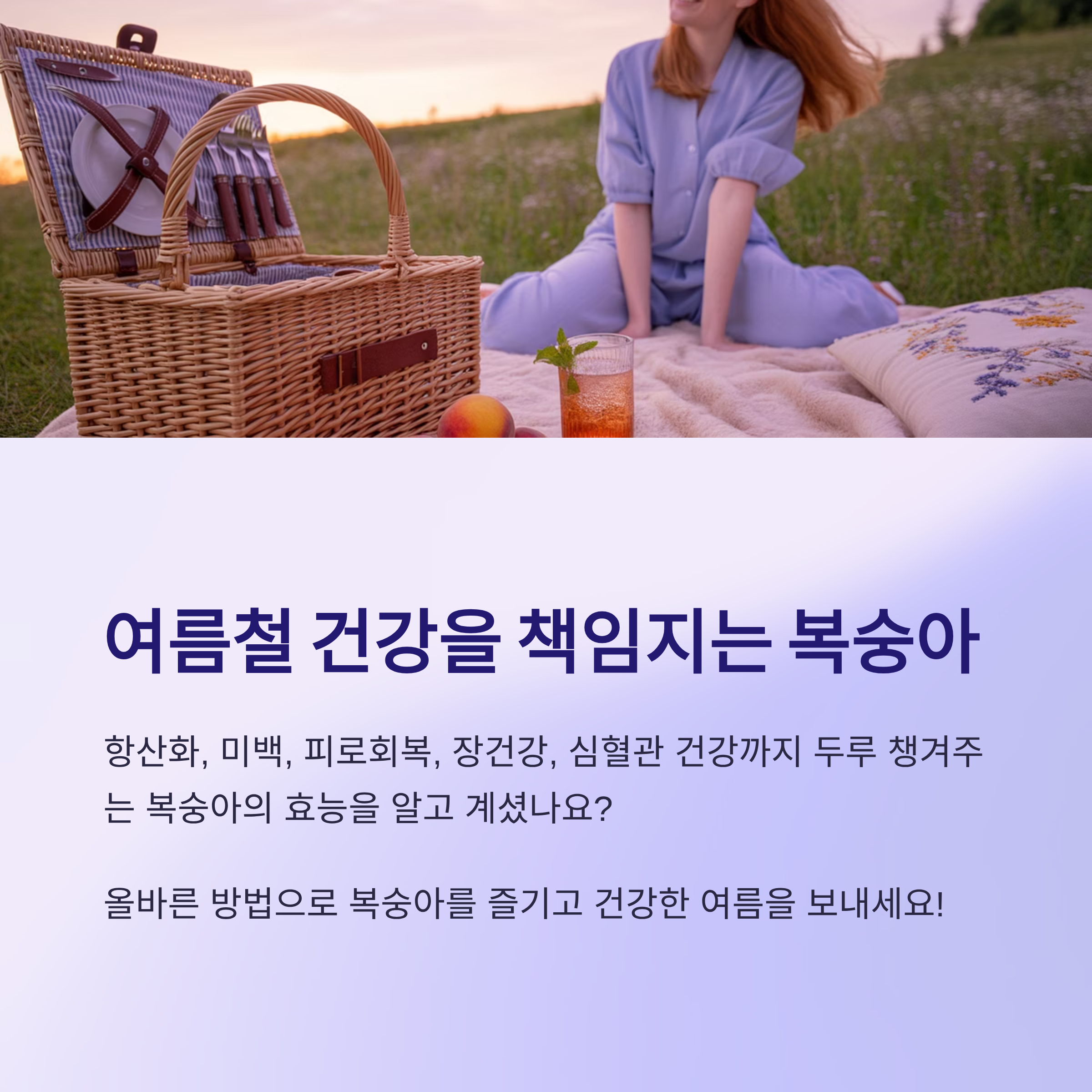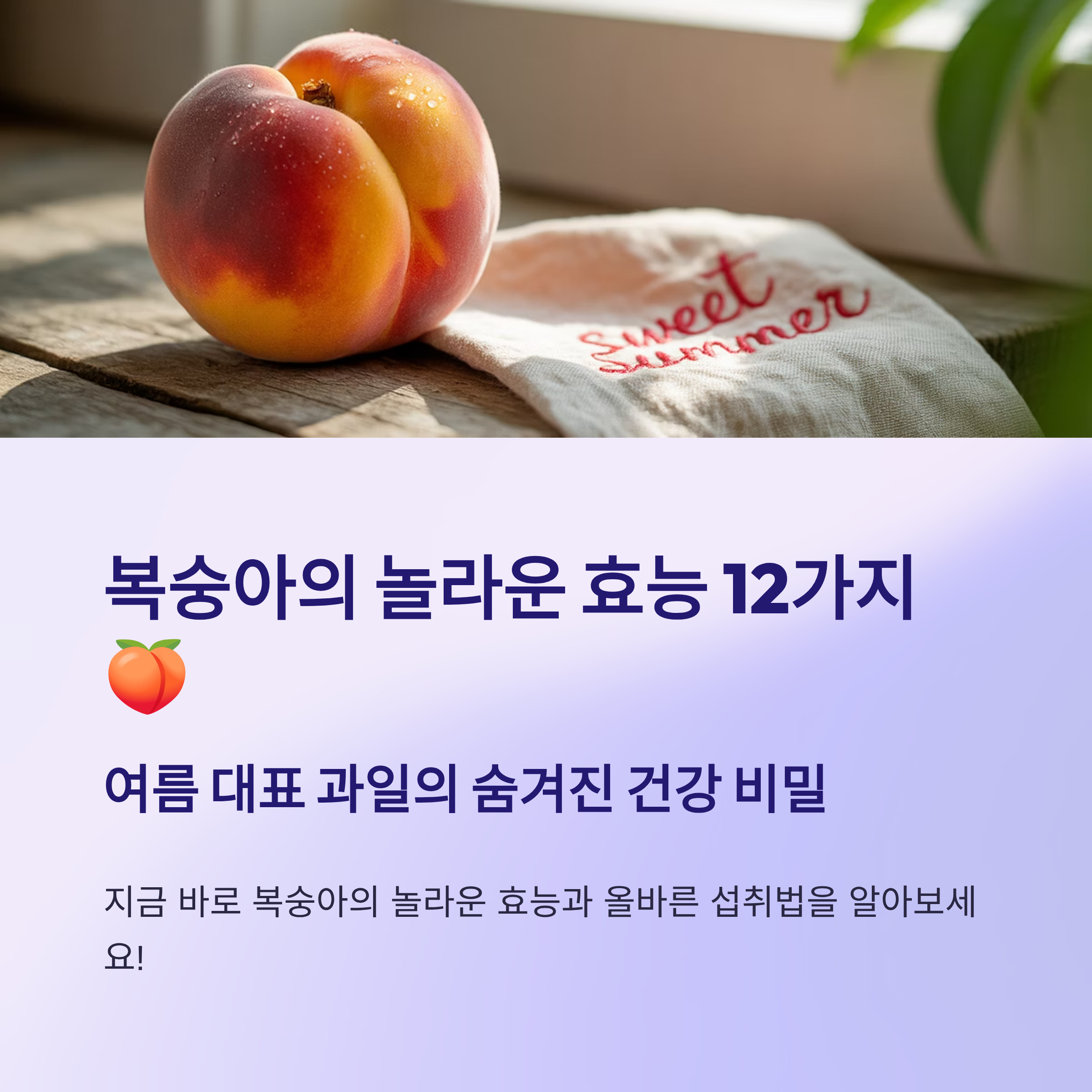 - 복숭아는 항산화·미백·피로회복·장건강부터 심혈관까지 두루 활약하는 여름철 대표 영양과일입니다.