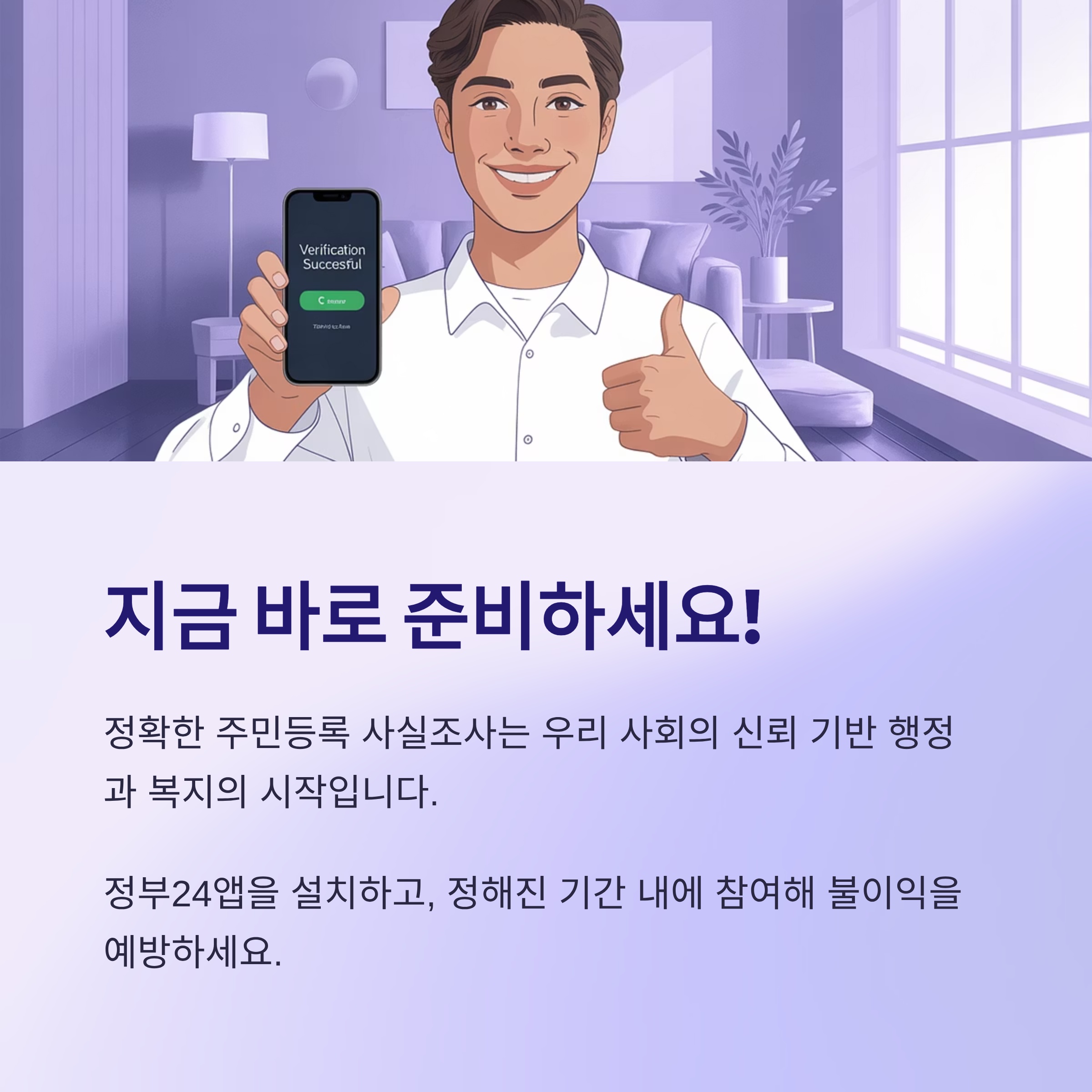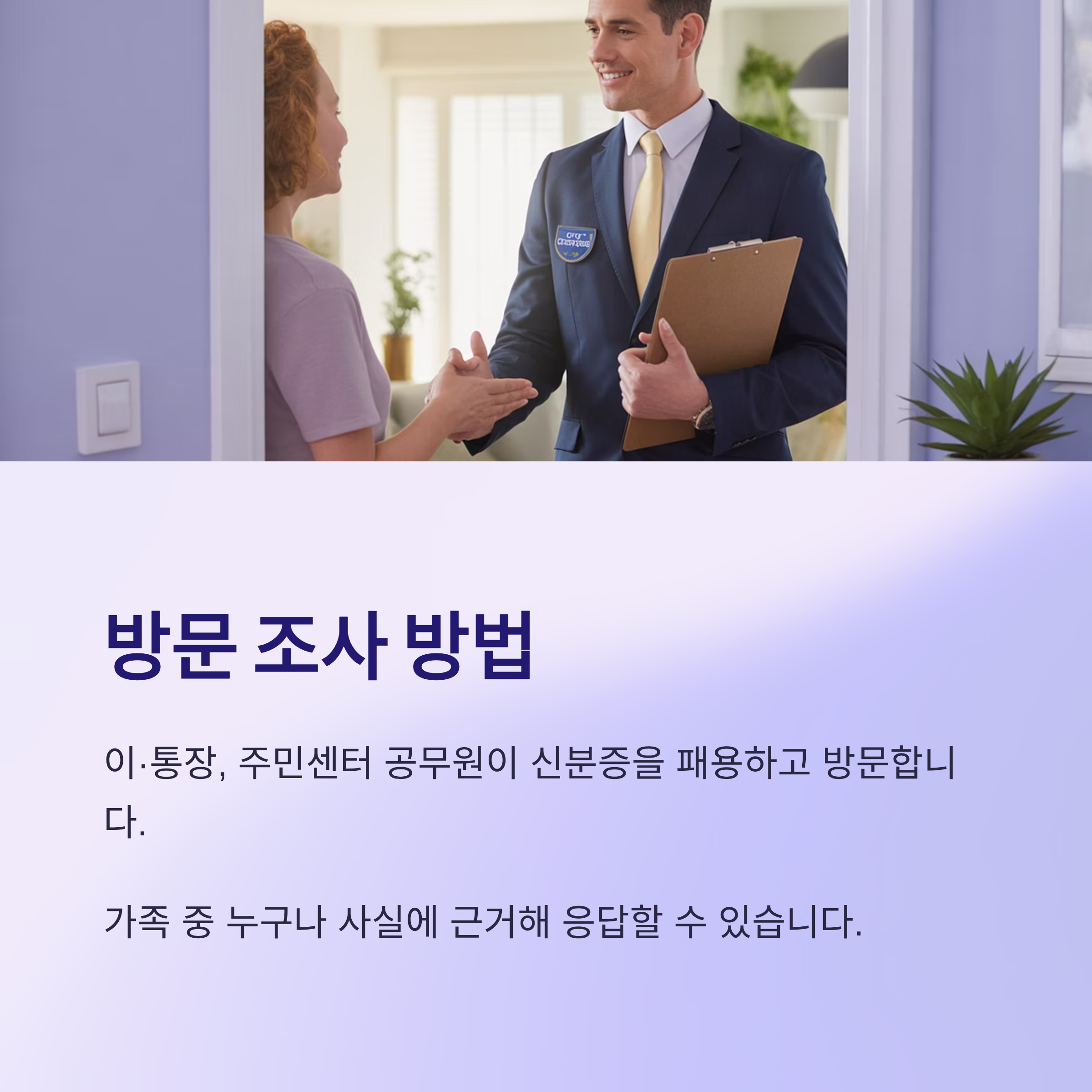 주민등록 사실조사는 주민의 실제 거주지와 주민등록상의 주소가 일치하는지를 확인해, 정확한 복지·행정서비스 제공을 위한 중요한 절차입니다. 특히 2025년에는 비대면과 방문 방식으로 나누어 전국적으로 시행되며, 참여하지 않으면 과태료와 각종 행정 불이익이 발생할 수 있으니 반드시 확인하세요.