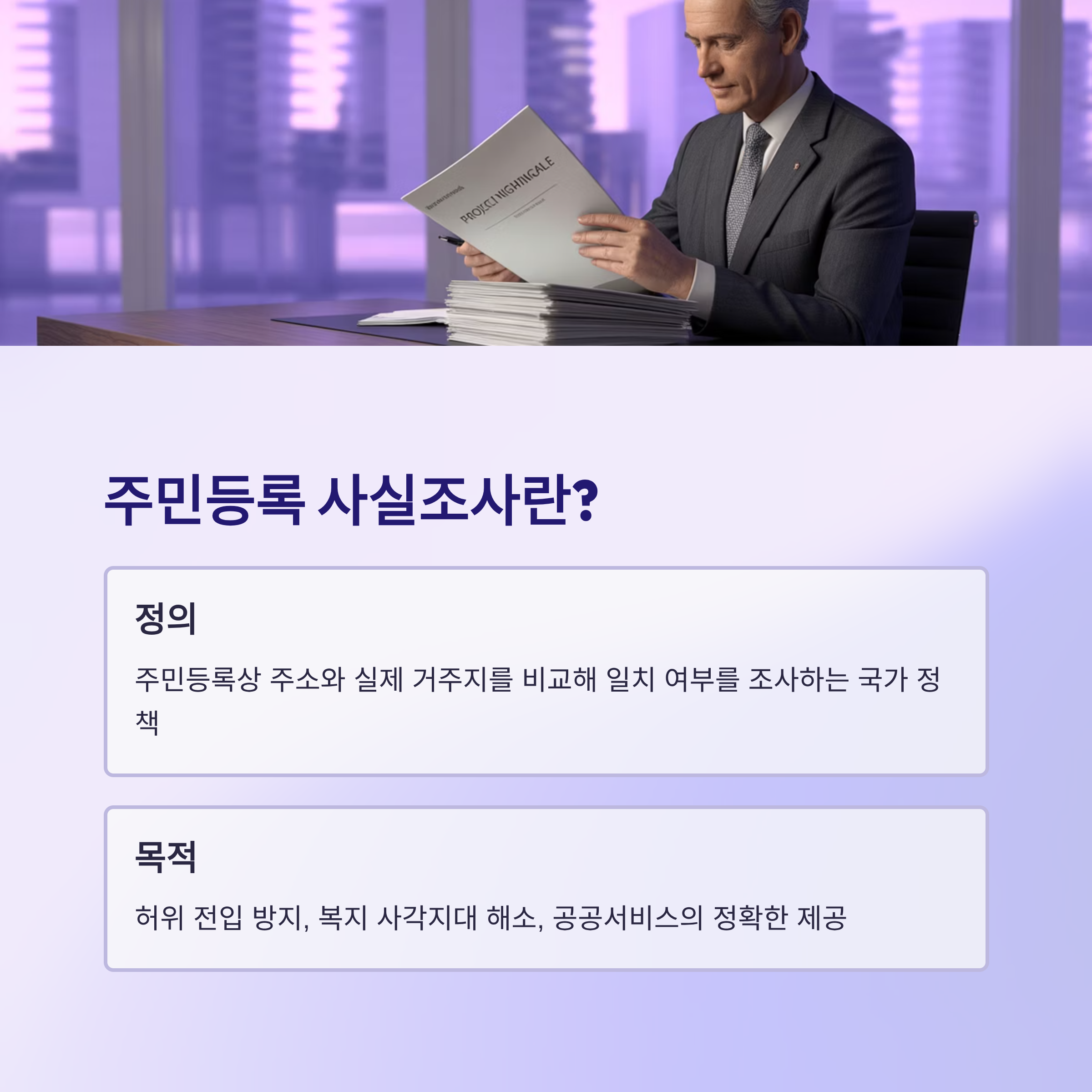 - 목적: 허위 전입 방지, 복지 사각지대 해소, 교육·건강보험 등 공공서비스의 정확한 제공