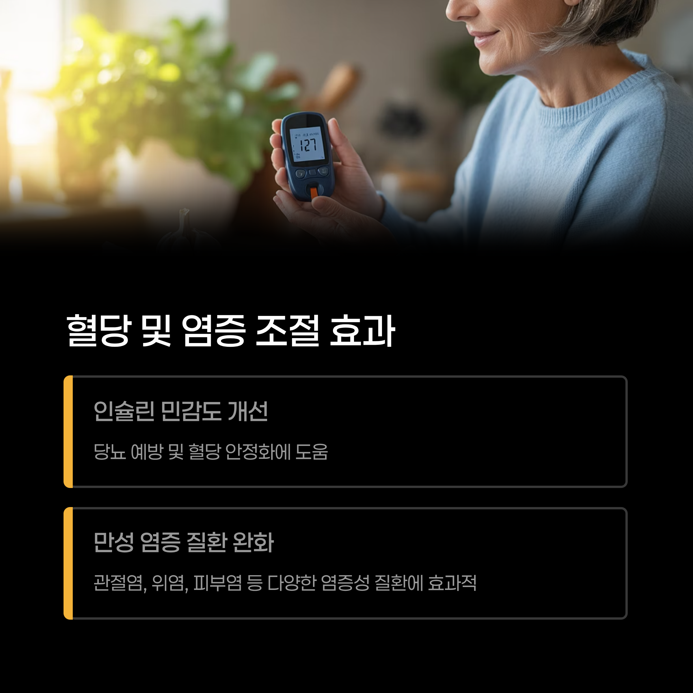 - 관절염, 위염, 피부염 등 만성 염증 질환 완화 가능