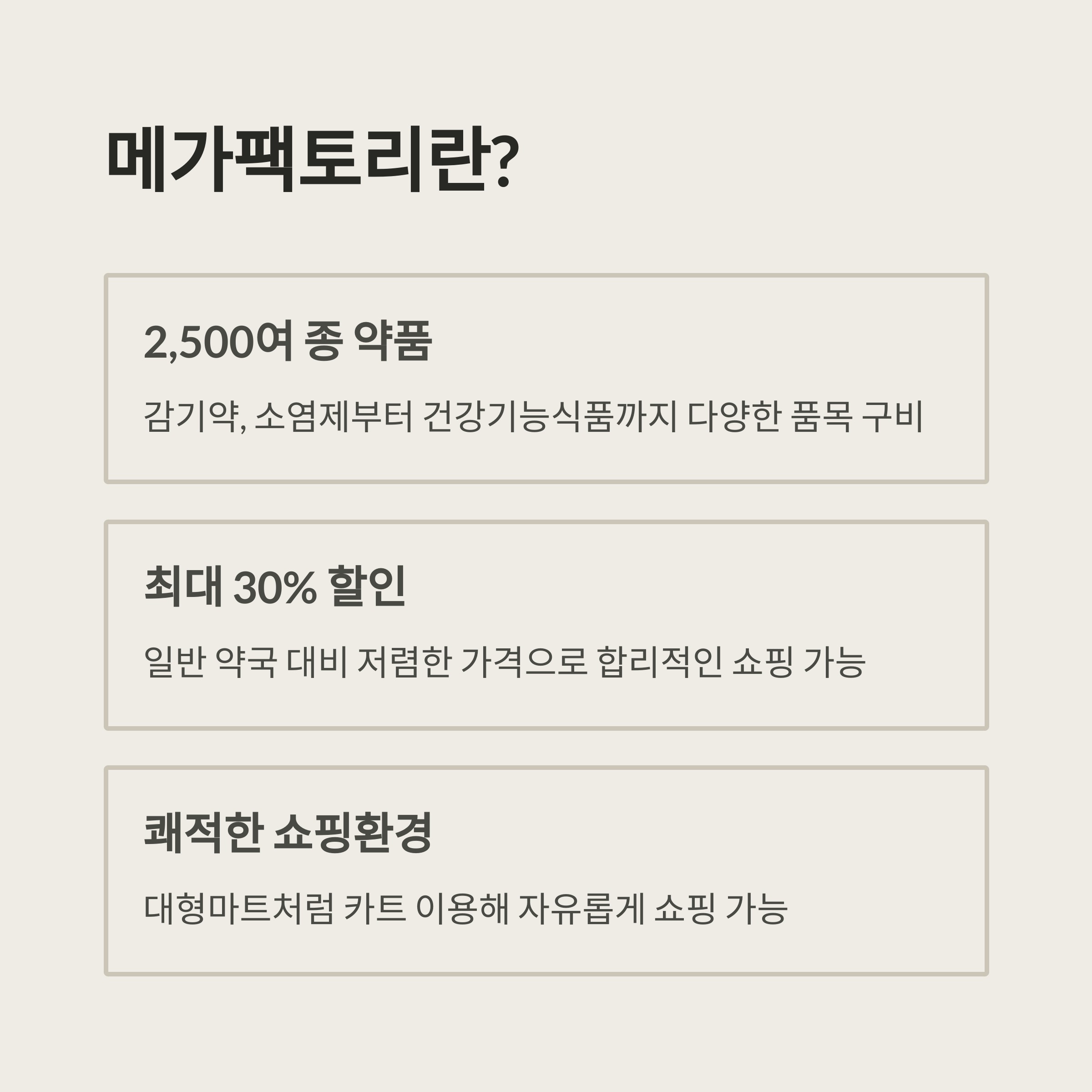 - 가격 경쟁력: 일반 약국 대비 최대 30% 저렴