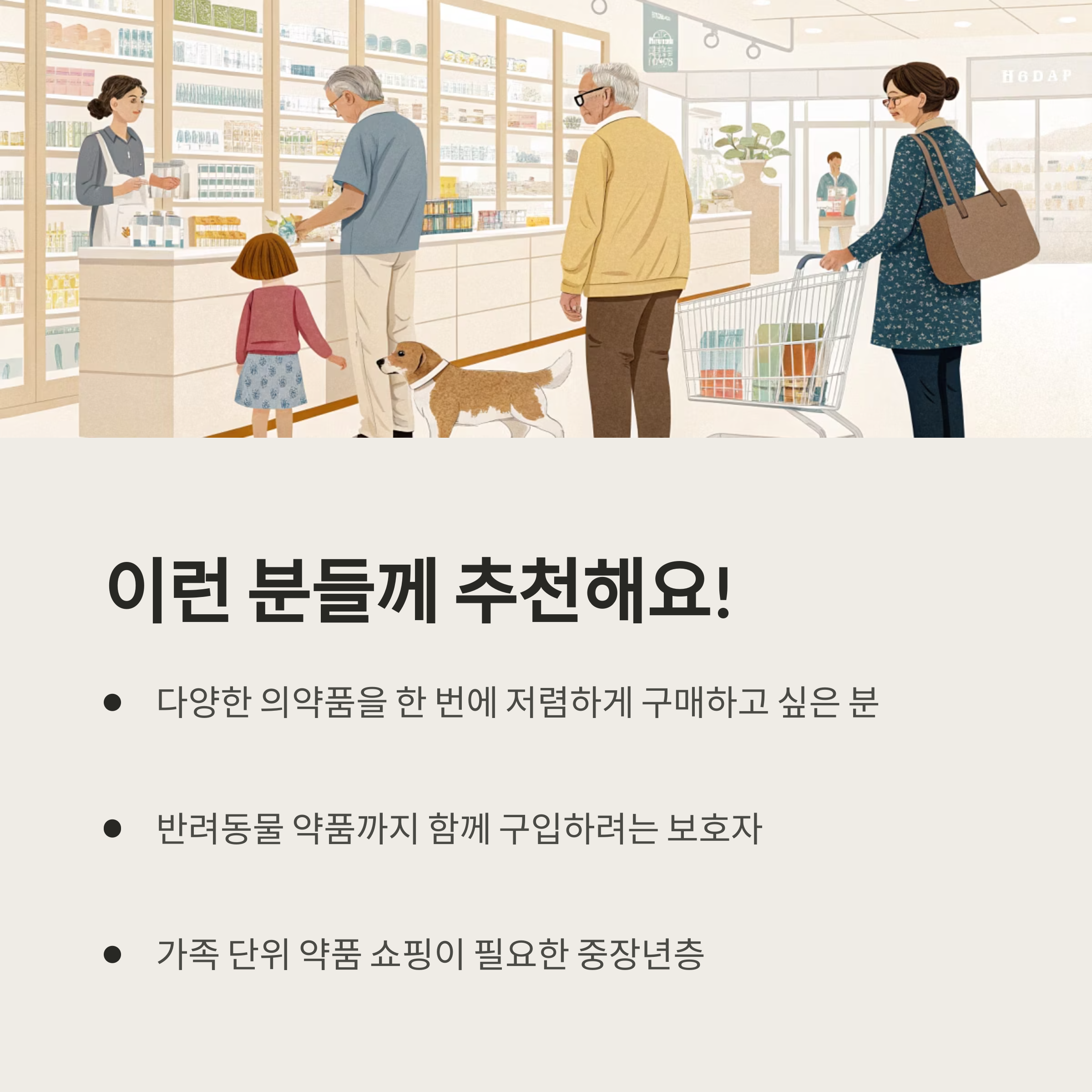 - 가족 단위 약품 쇼핑이 필요한 중장년층