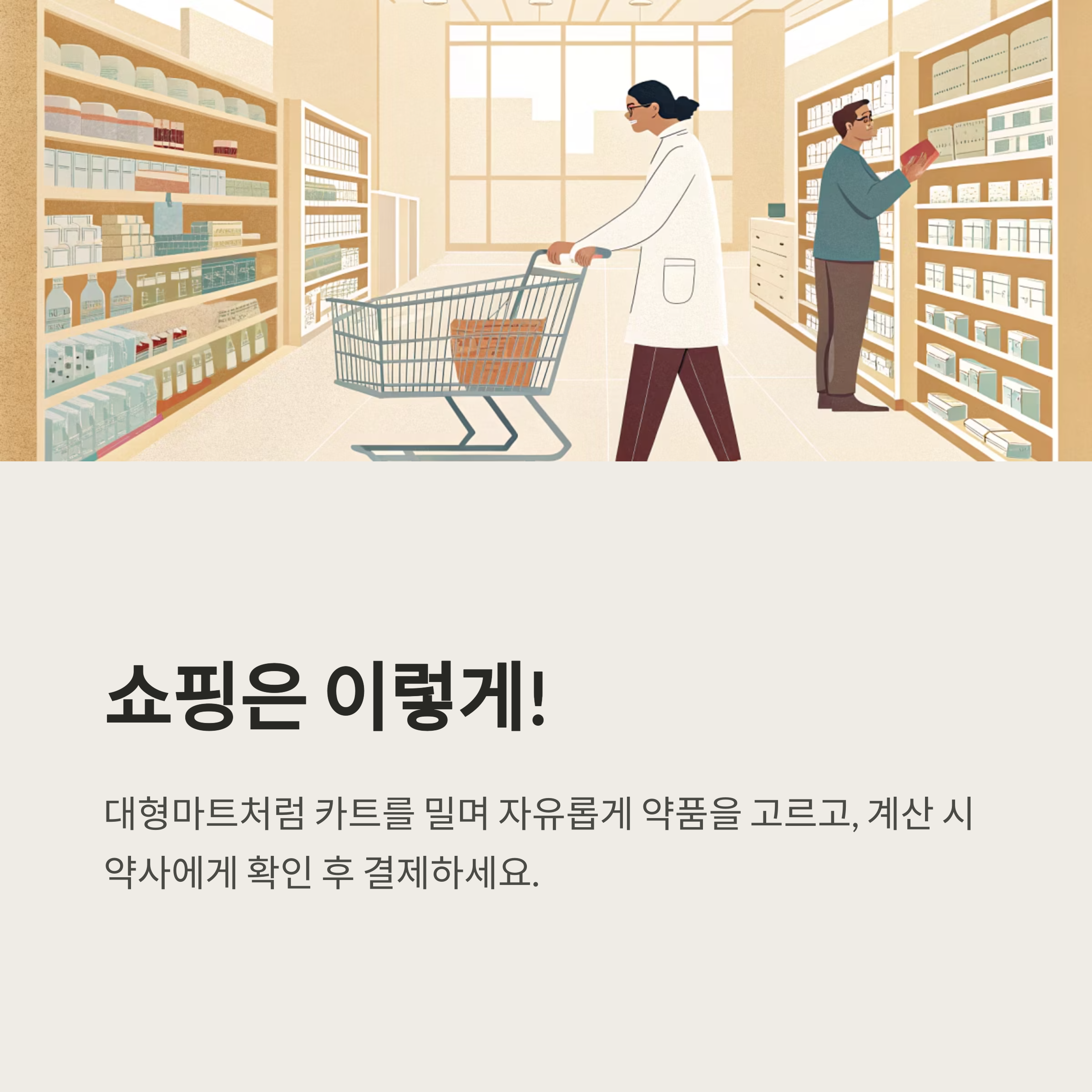 약국도 대형마트처럼 자유롭게 쇼핑할 수 있다면 어떨까요?
