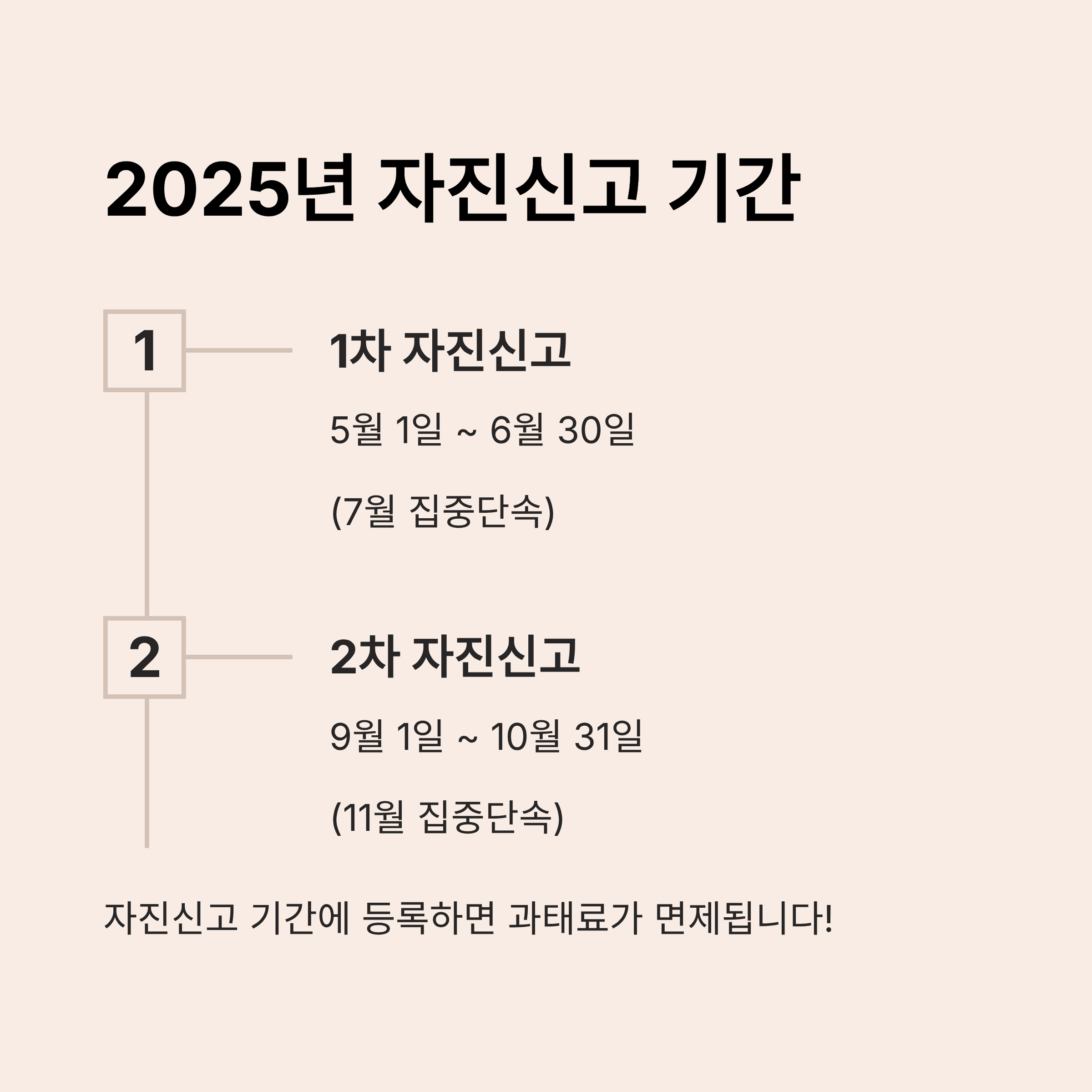 - 자진신고: 5~6월·9~10월 기간 활용 시 면제