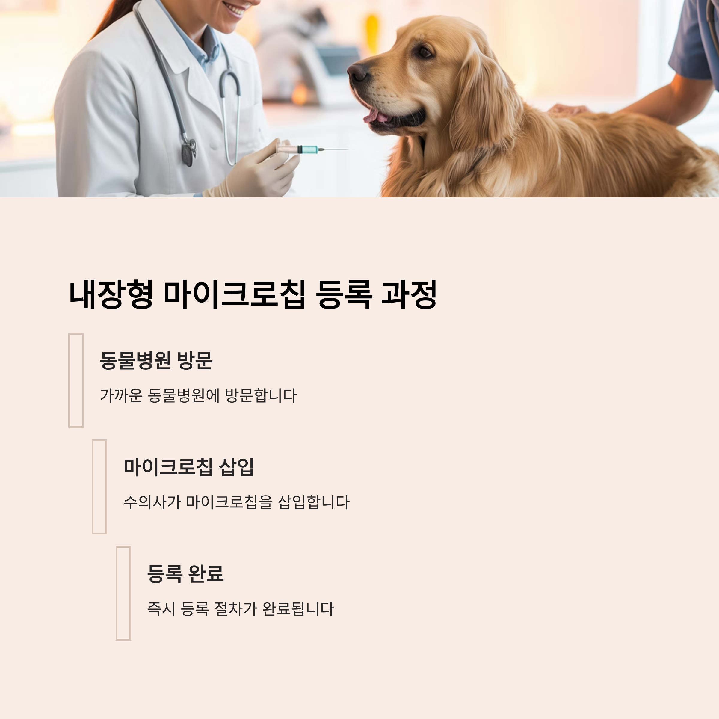 - 내장형: 동물병원 방문 → 마이크로칩 삽입 후 즉시 등록