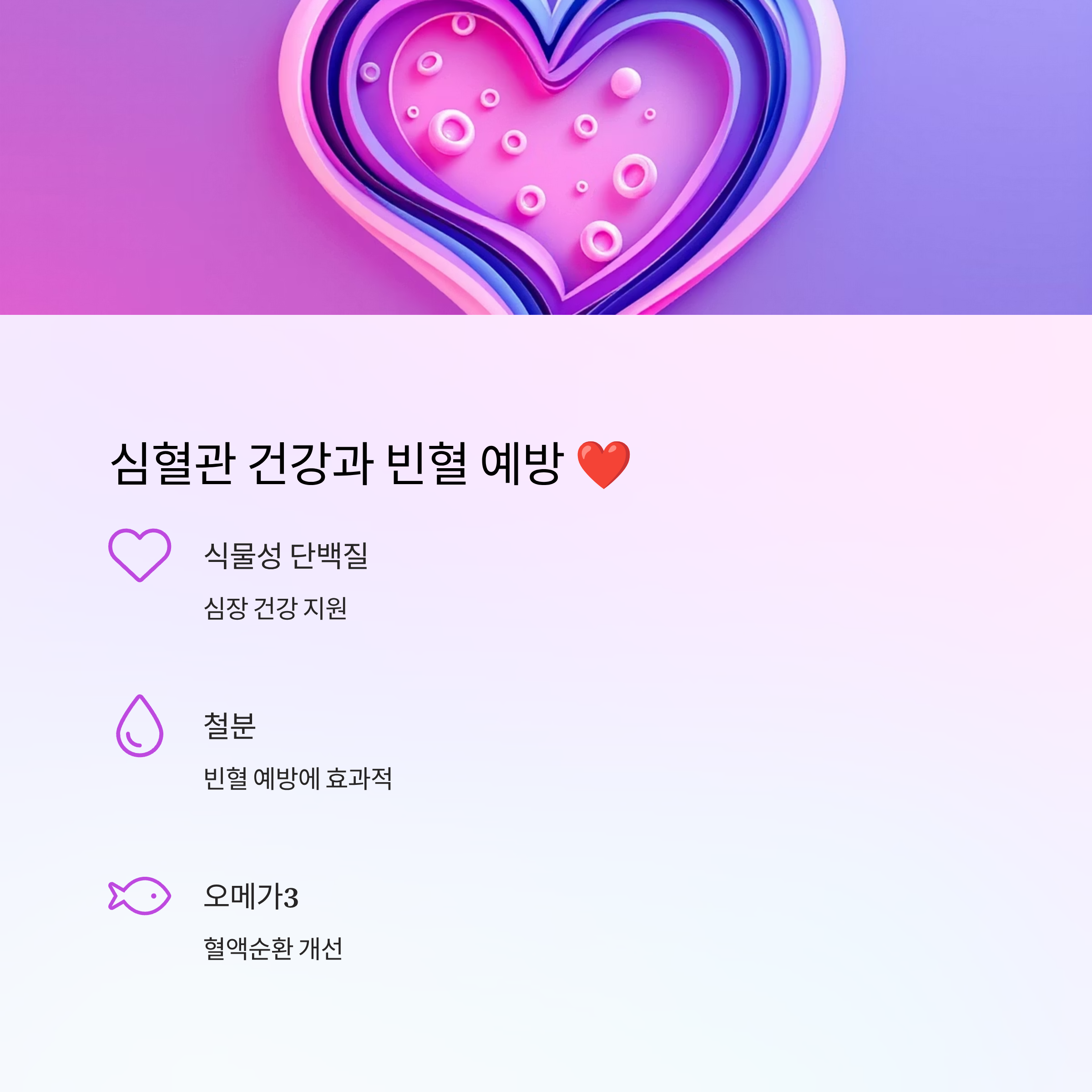 식물성 단백질과 철분, 오메가3가 풍부해 혈액순환을 도와 심장 건강을 지키고 빈혈을 예방하는 데 유익합니다.