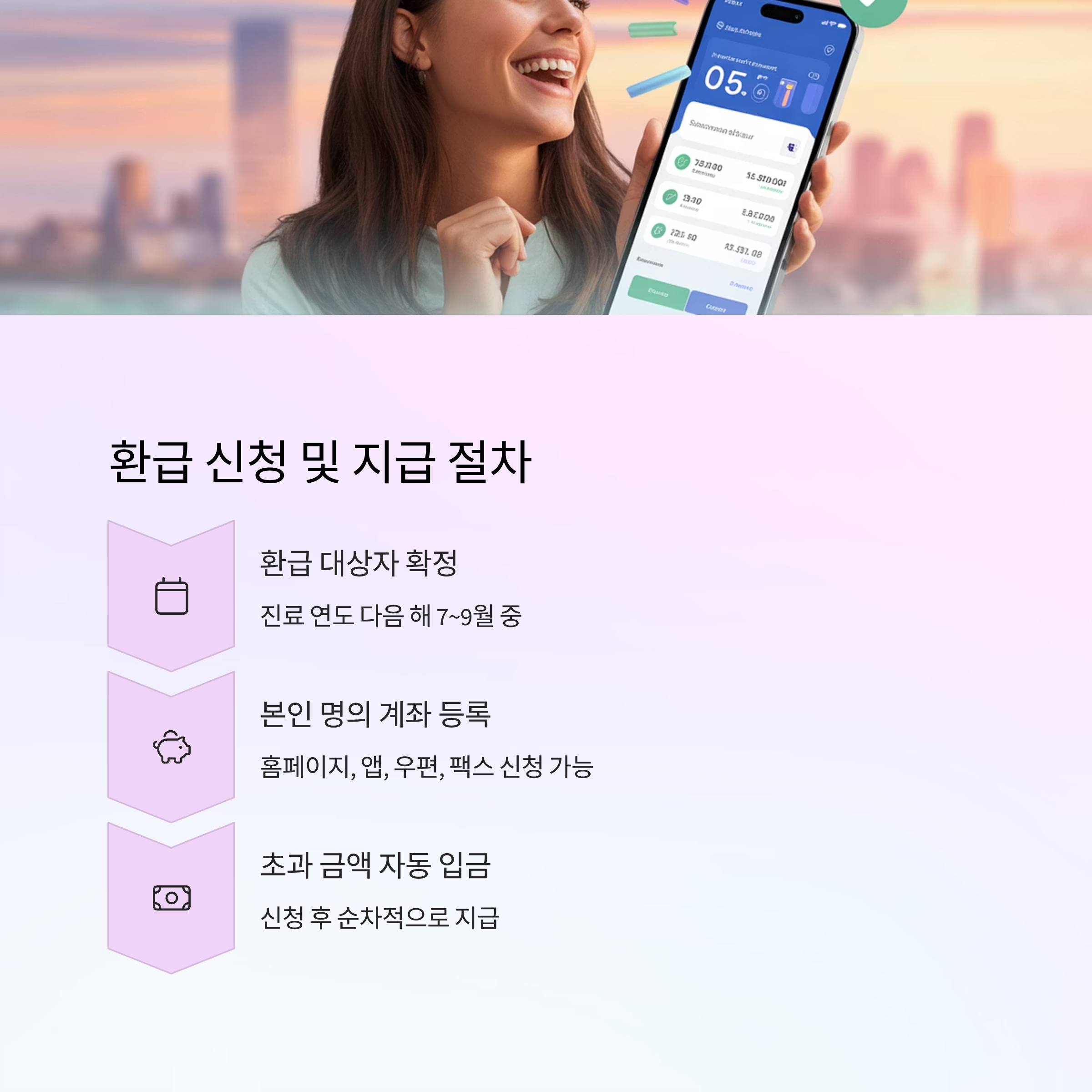 - 진료 연도 다음 해 7~9월 중 환급 대상자 확정 및 순차적 지급
