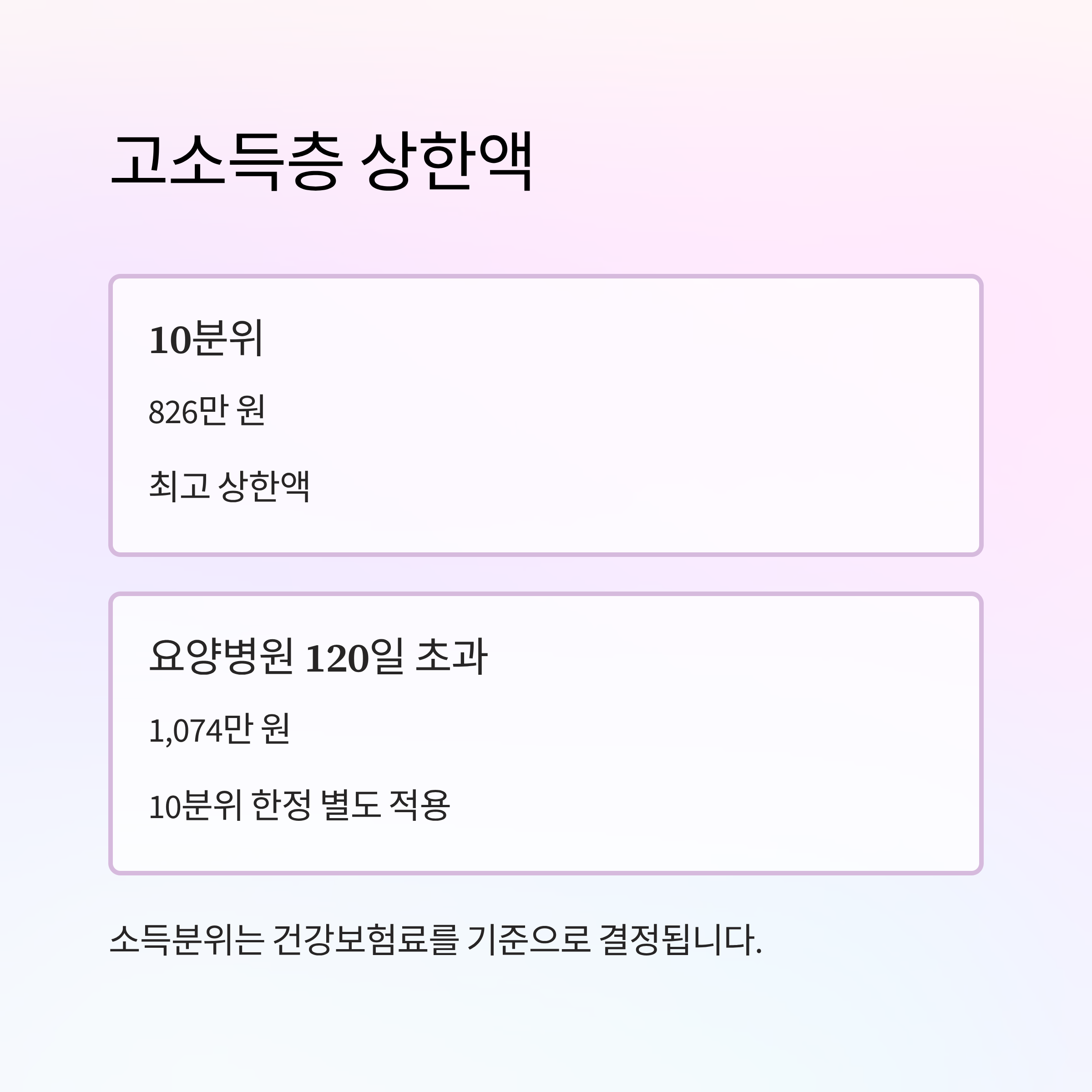 | (요양병원 120일 초과) | 1,074만 원 | 10분위 한정 별도 적용 |
